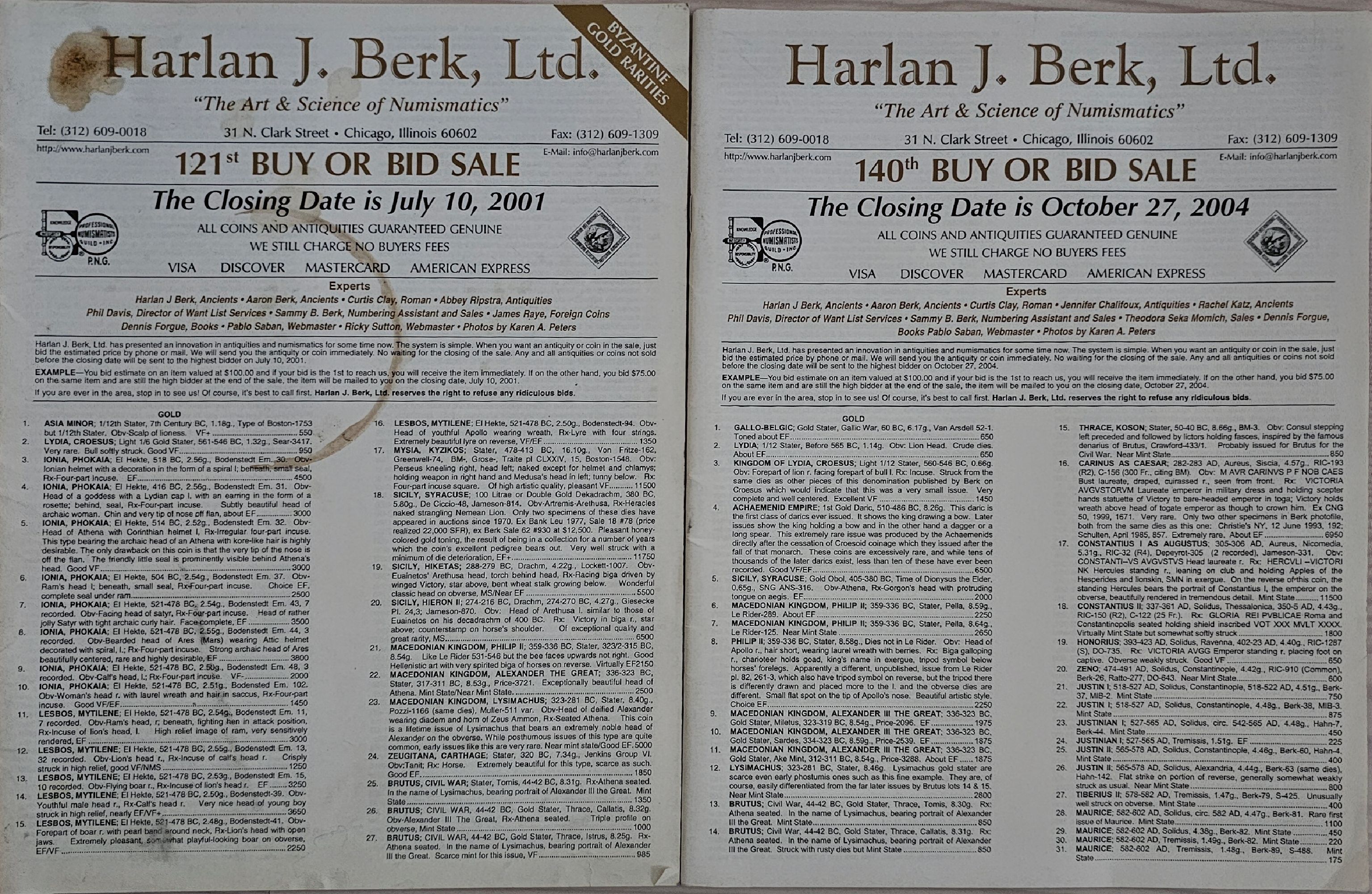 Harlan J. Berk, Ltd. 121st Buy Or Bid Sale. 140th Buy Or Bid Sale
