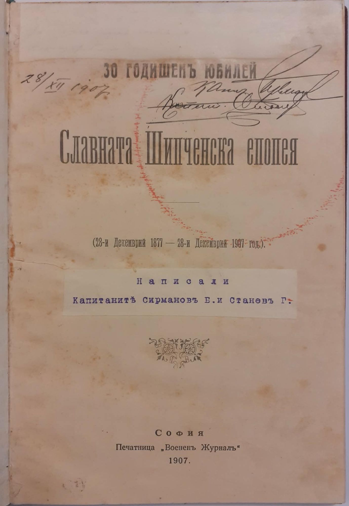 28-и Декемврий 1877 - 28-и Декемврий 1907 год.