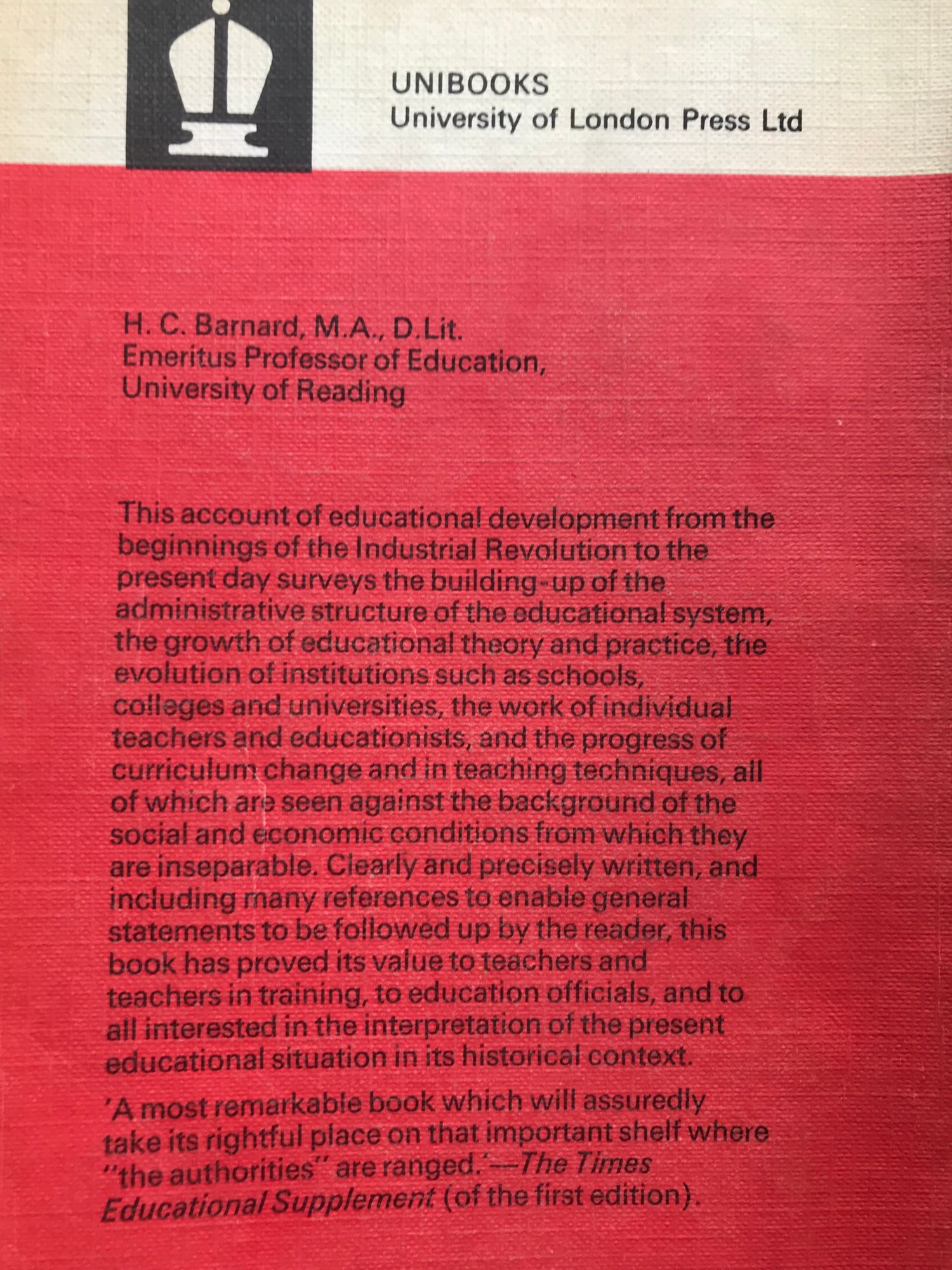 от prof. H. C. Barnard, проф. Х. К. Бернард