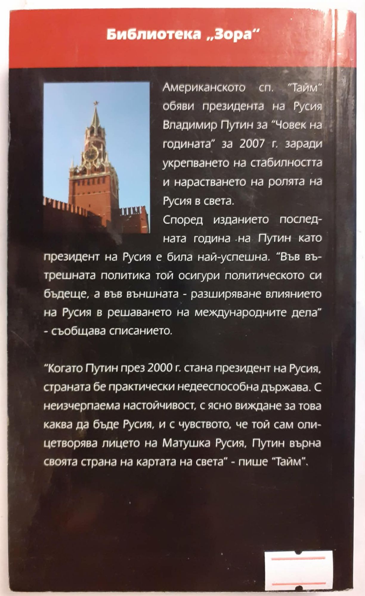 Американското списание "Тайм" обяви президента на Русия Владимир Путин за "Човек на годината" за 2007 г. заради укрепването на стабилността и нарастването на ролята на Русия в света. Според изданието последната година на Путин като президент на Русия е била най-успешна. "Във вътрешната политика той осигури политическото си бъдеще, а във външната - разширяване влиянието на Русия в решаването на международните дела" - съобщава списанието."Когато Путин през 2000 г. стана президент на Русия, страната бе практически недееспособна държава. С неизчерпаема настойчивост, с ясно виждане за това каква да бъде Русия, и с чувството, че той сам олицетворява лицето на Матушка Русия, Путин върна своята страна на картата на света" - пише "Тайм".