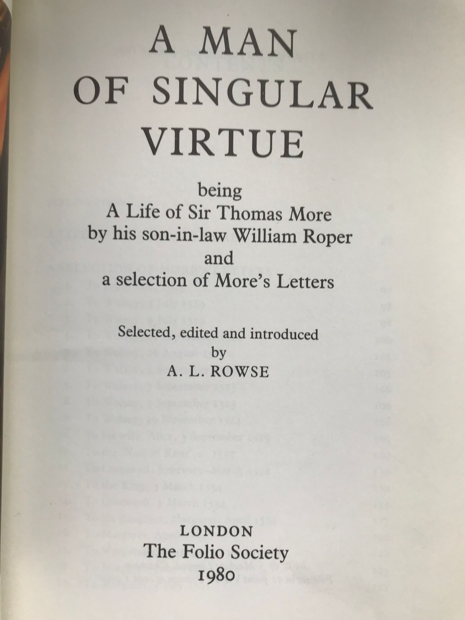 Being A Life of Sir Thomas More by his son-in-law William Roper and a selection of More's Letters