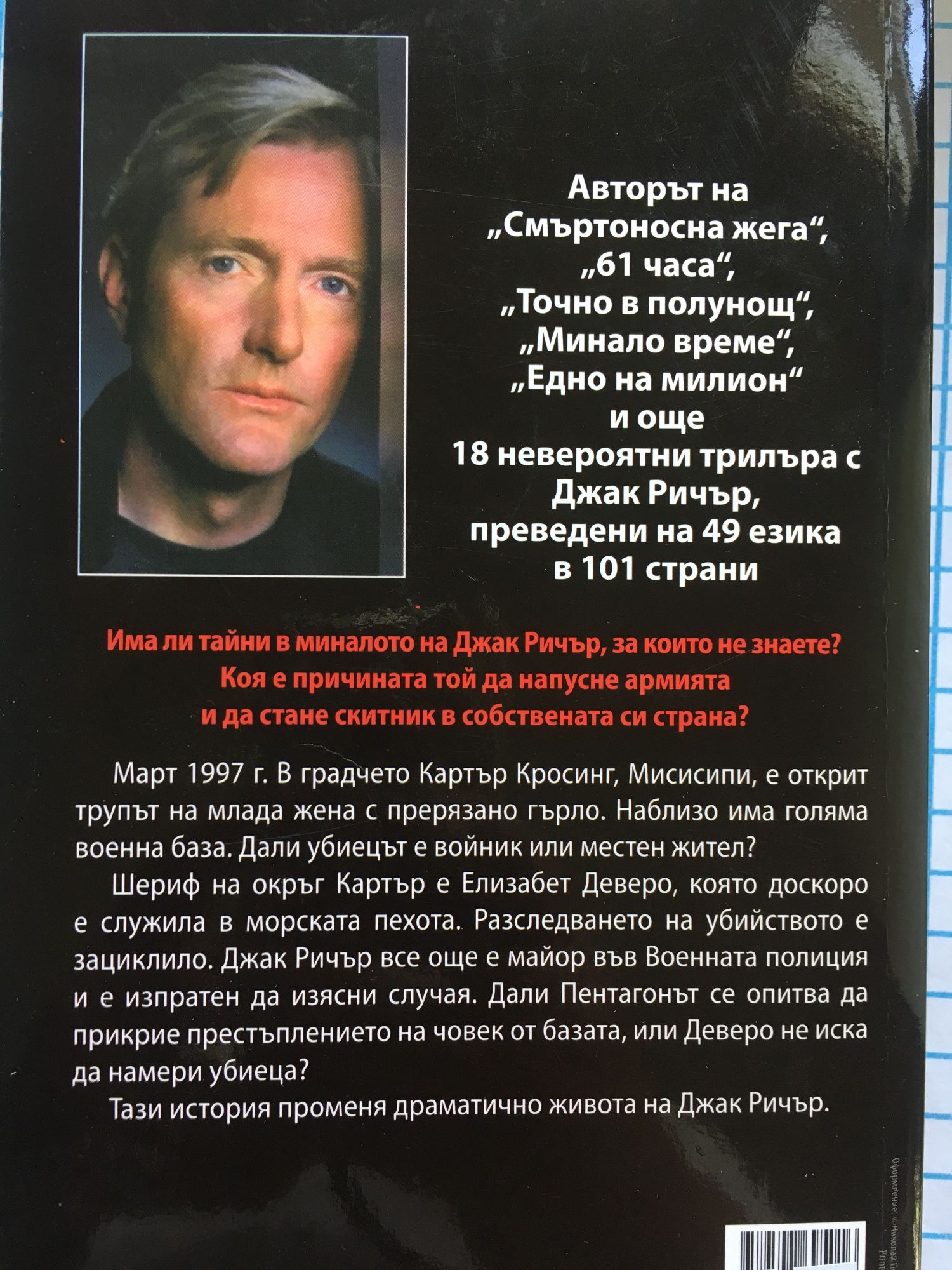 Има ли тайни в миналото на Джак Ричър, за които не знаете? Коя е причината той да напусне армията и да стане скитник в собствената си страна? Март 1997 година. В градчето Картър Кросинг, Мисиспи, е открит трупът на млада жена с прерязано гърло. Наблизо има голяма военна база. Дали убиецът е войник или местен жител? Джак Ричър все още е майор във Военната полиция и е изпратен да изясни случая под прикритие. Шериф на окръг Картър е Елизабет Деверо, която доскоро е служила в морската пехота. Разследването й на убийството е зациклило. Данли Пантагонът се опитва да прикрие престъплението на човек от базата, или Деверо не иска да открие убиеца? Тази история променя драматично живота на Джак Ричър.