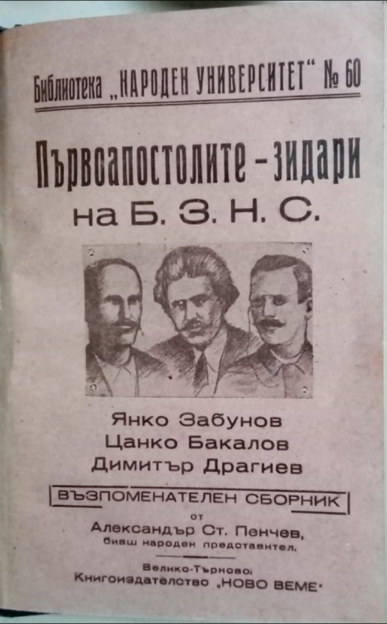 Конволют от две книги на Александър Ст. Пенчев за историята и дейците на БЗНС: 1. Александър Стамболийски: Негова живот, борби и дело (с илюстрации). Спомени и бележки, 2. Велико Търново, 1945, 32 с. 2. Първоапостолите зидари на Б. З. Н. С.: Янко Забунов, Цанко Бакалов, Димитър Драгиев. Възпоменателен сборник. Велико Търново, 1945, 32 с.