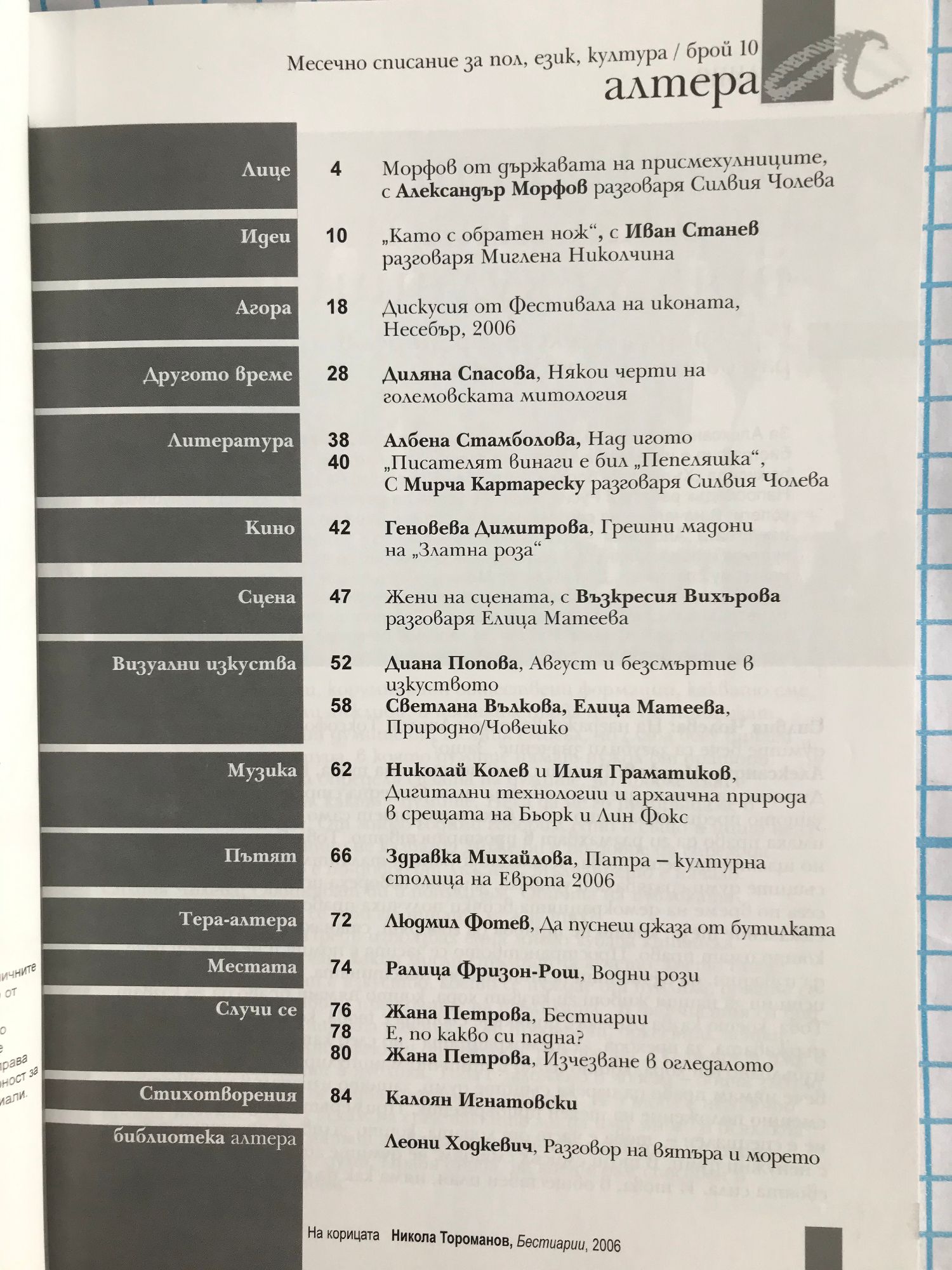 Морфов от държавата на присмехулниците. Иван Станев: "Като с обратен нож." Мирча Картареску: "Писателят винаги е бил Пепеляшка." Да пуснеш джаза от бутилката. Бестиарии.