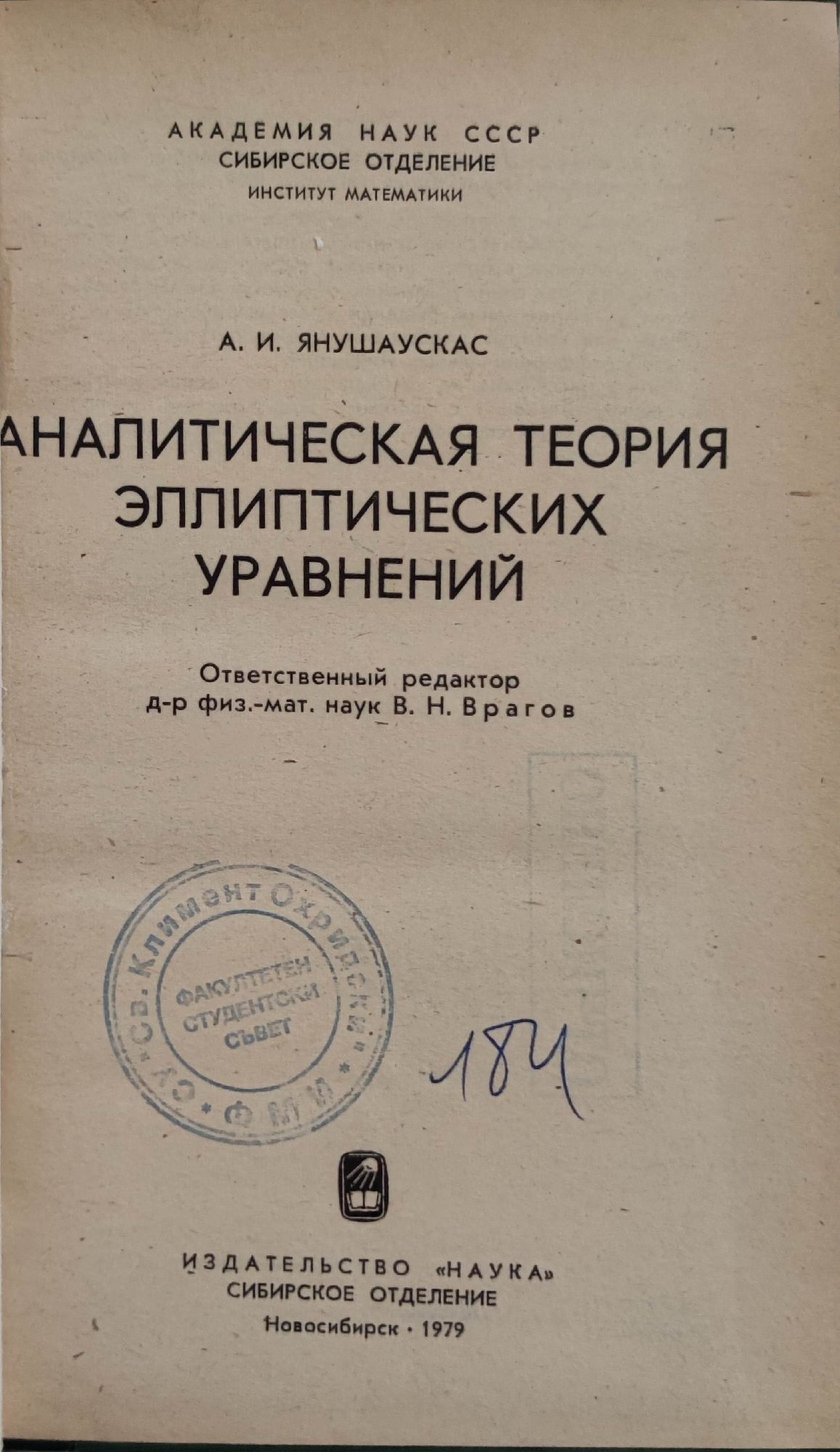 Аналитическая теория эллиптических уравнений/ Аналитична теория на елиптичните уравнения