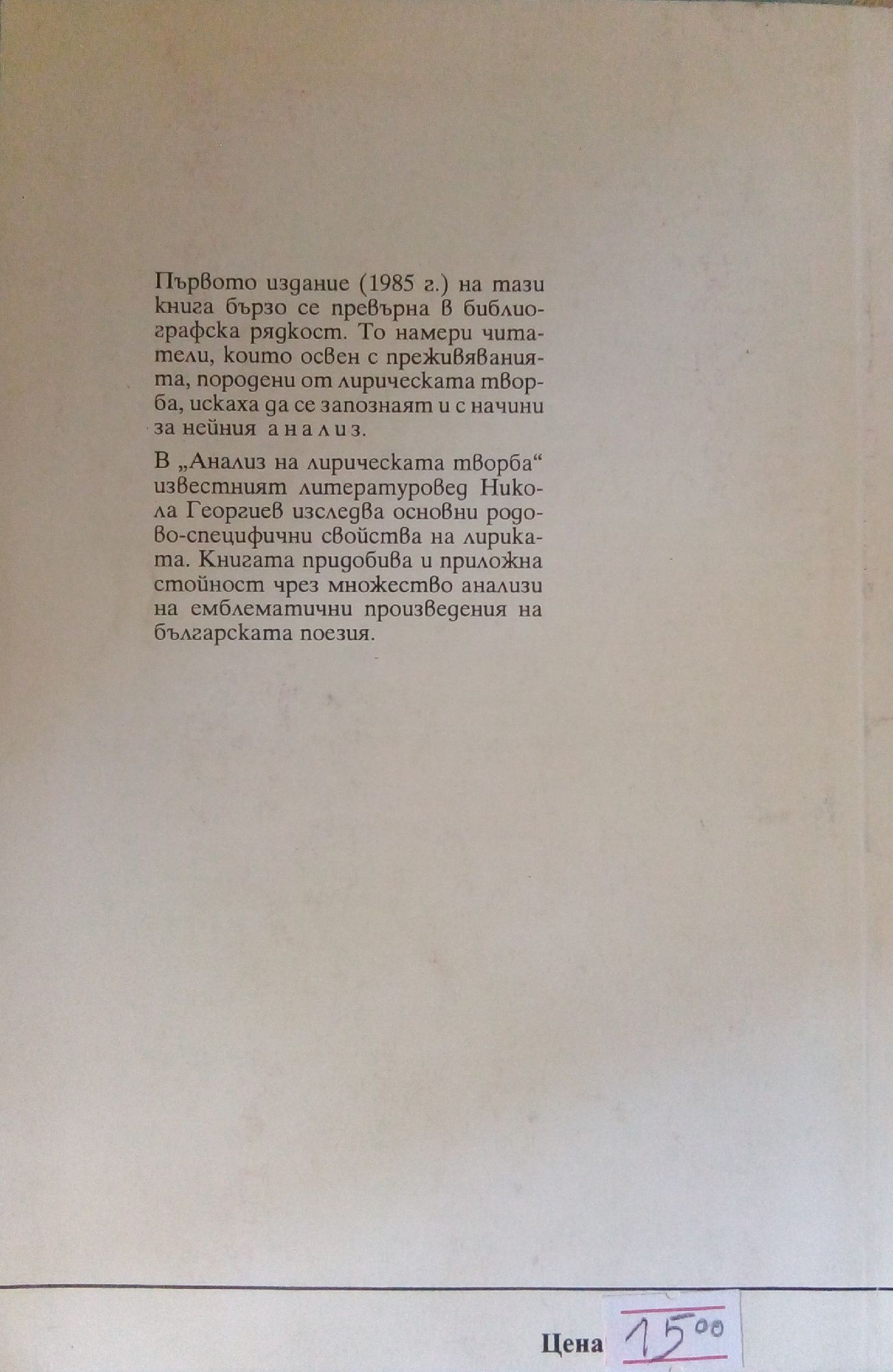 12,00 лв. / 6,14 €Много добро състояние на книжното тяло. С леки следи от употреба по корицата