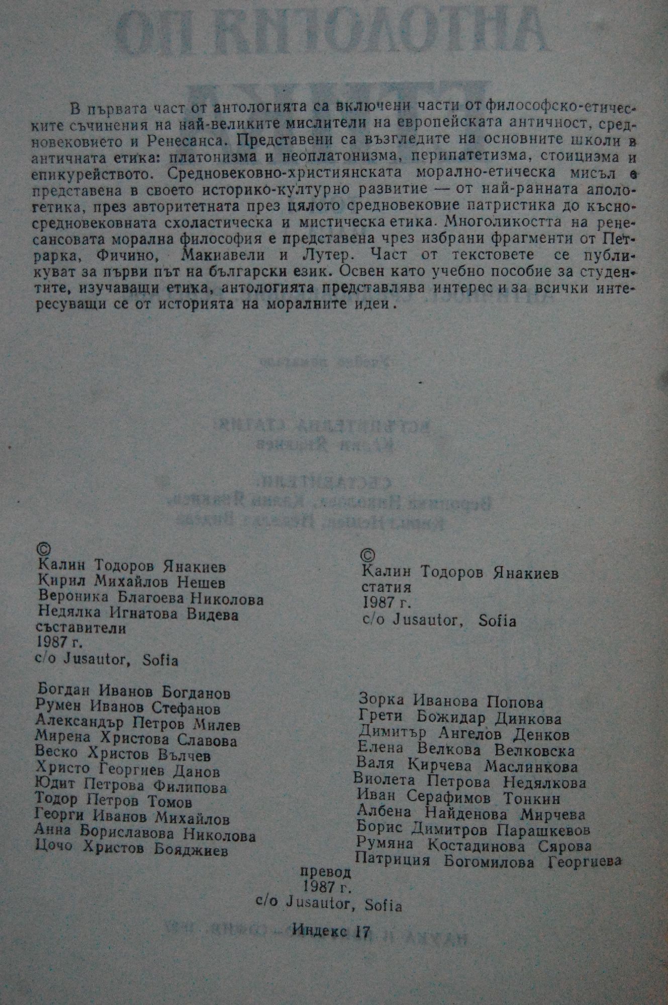 Антология по етика - том 1