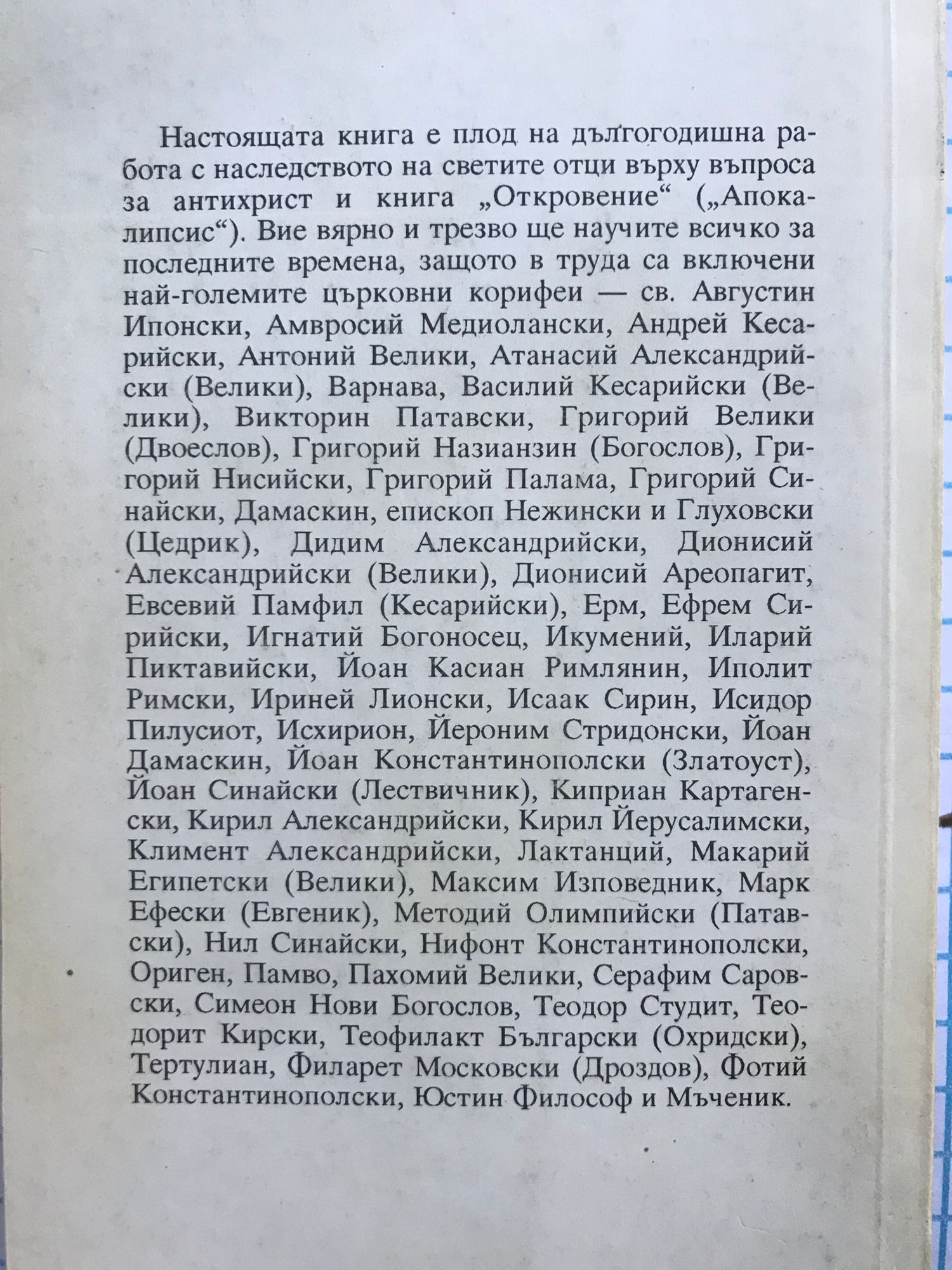 Апокалиптичната перспектива от края на времената в светоотечески синтез