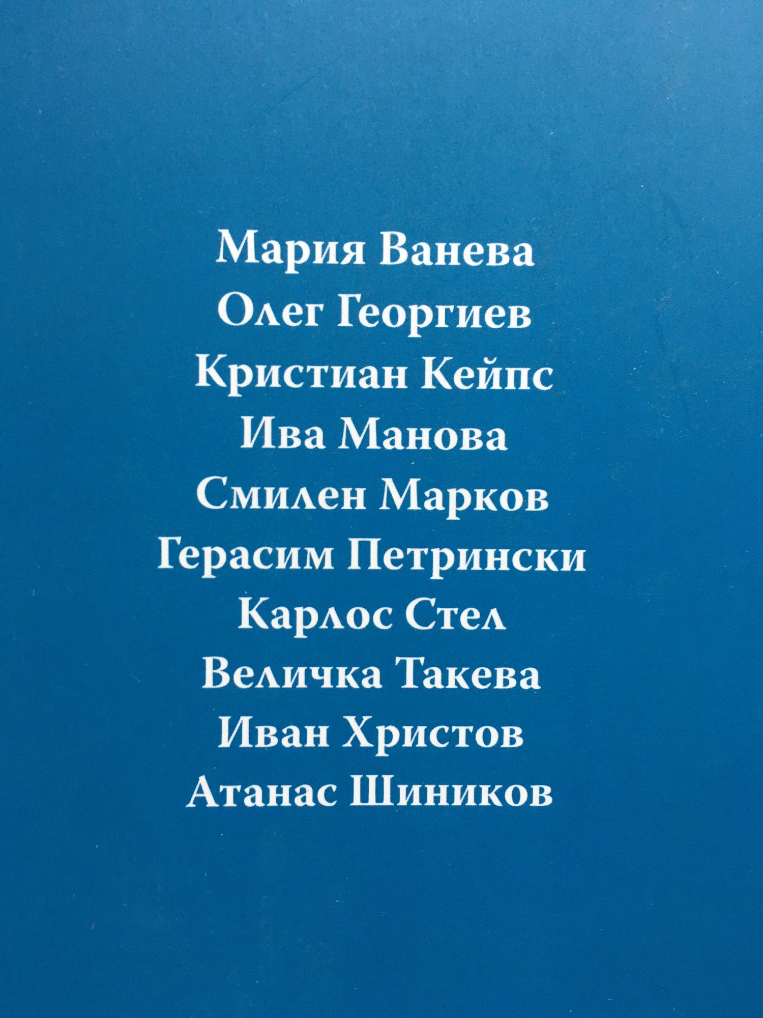 Мария Ванева Олег Георгиев Кристиан Кейпс Ива Манова Смилен Марков Герасим Петрински Карлос Стел Величка Такева Иван Христов Атанас Шиников