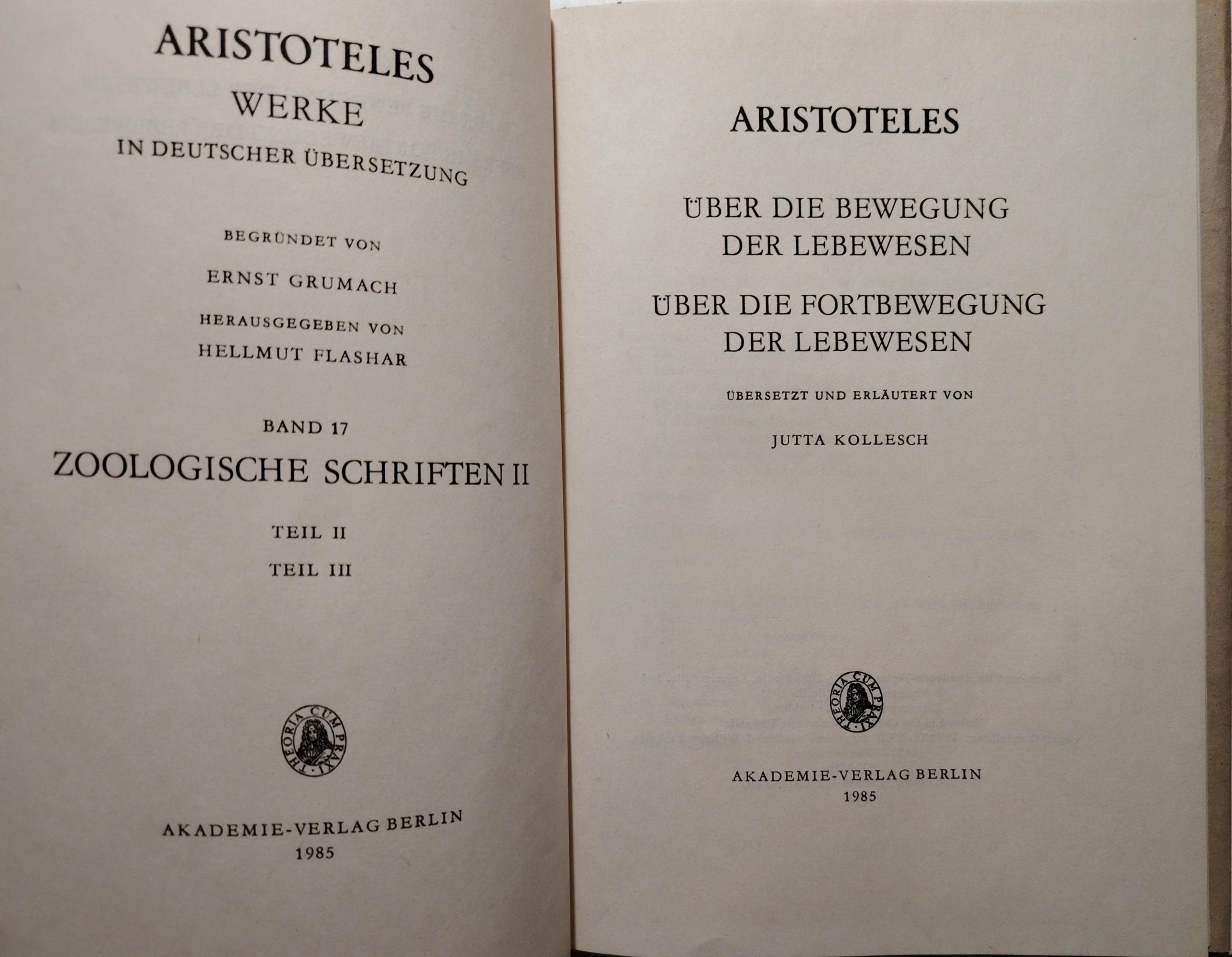 Zoologishe Schriften II: Über die Bewegung der Lebewesen / Über die Fortbewegung der Lebewesen
