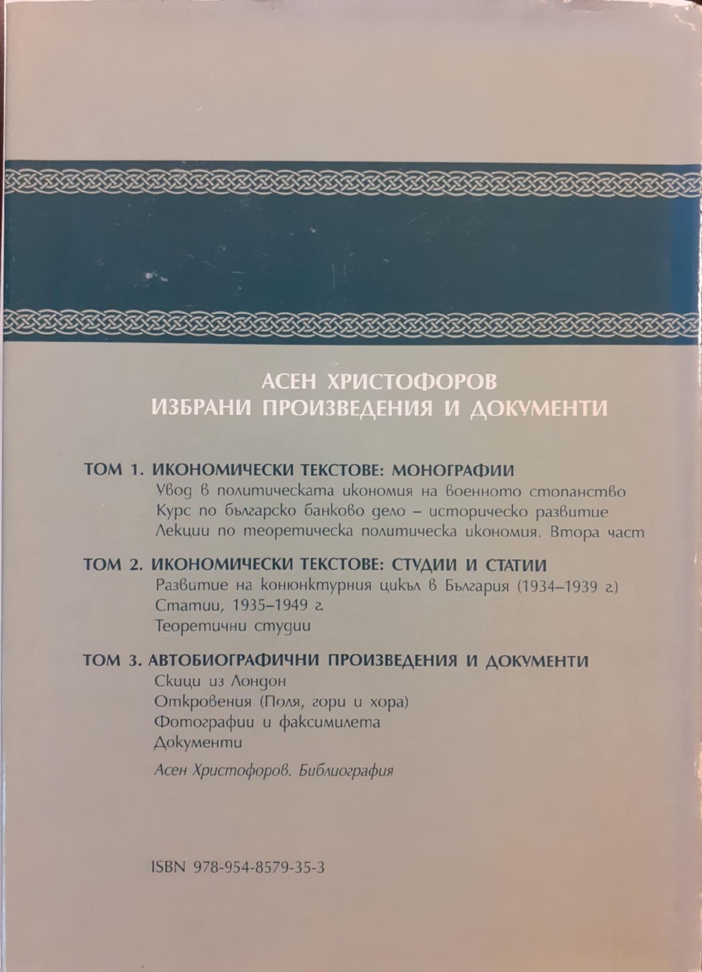 Икономически текстове: монографии. Икономически текстове: студии и статии. Автобиографични произведения и документи