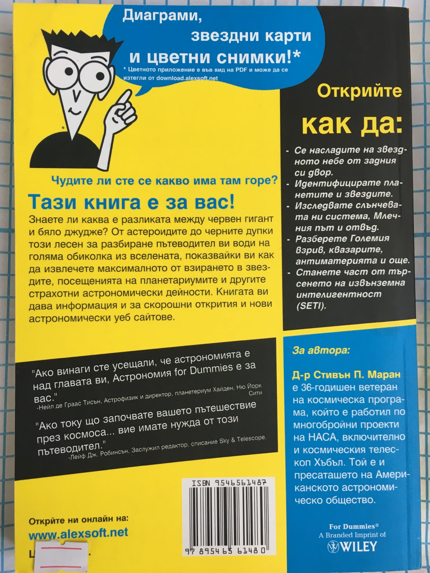 Чудите ли сте се какво има там горе? Тази книга е за вас! Знаете ли каква е разликата между червен гигант и бяло джудже? От астероидите до черните дупки този лесен за разбиране пътеводител ви води на голяма обиколка из вселената, показвайки ви как да извлечете максималното от взирането в звездите, посещенията на планетариумите и другите страхотни астрономически дейности. Книгата ви дава информация и за скорошни открития и нови астрономически уеб сайтове. Открийте как да: - се насладите на звездното небе от задния си двор - идентифицирате планетите и звездите - изследвате слънчевата ни система, Млечния път и отвъд - разберете Големия взрив, квазарите, антиматерията и още - станете част от търсенето на извънземна интелигентност (SETI)