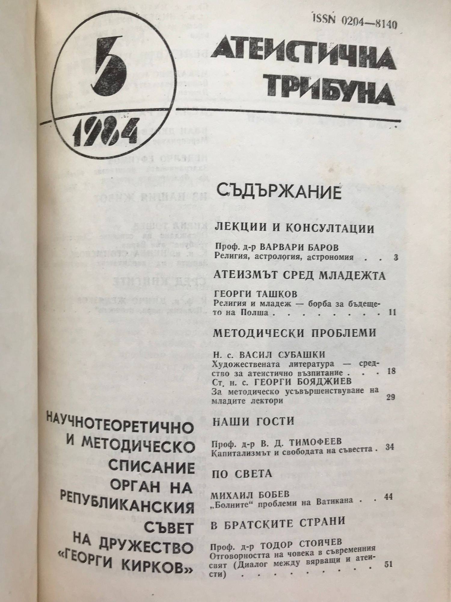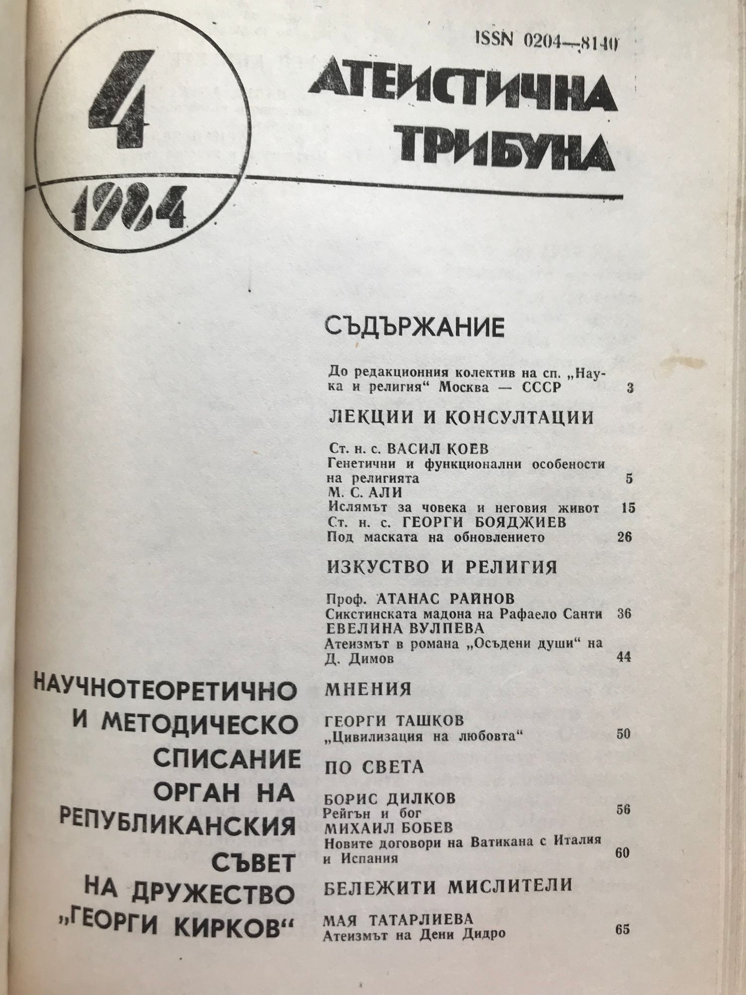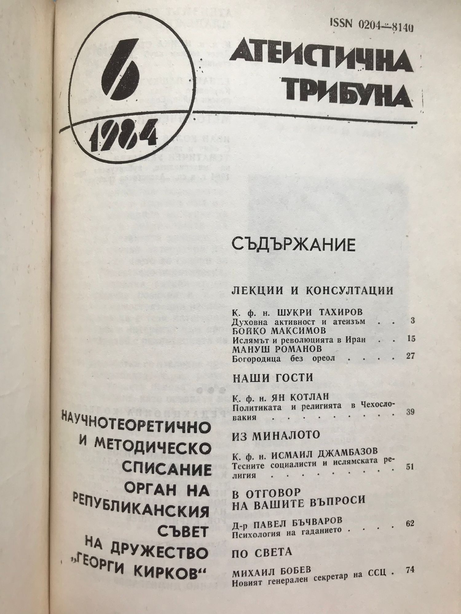 Атеистична трибуна - бр. 1 - 6 / 1984 г.