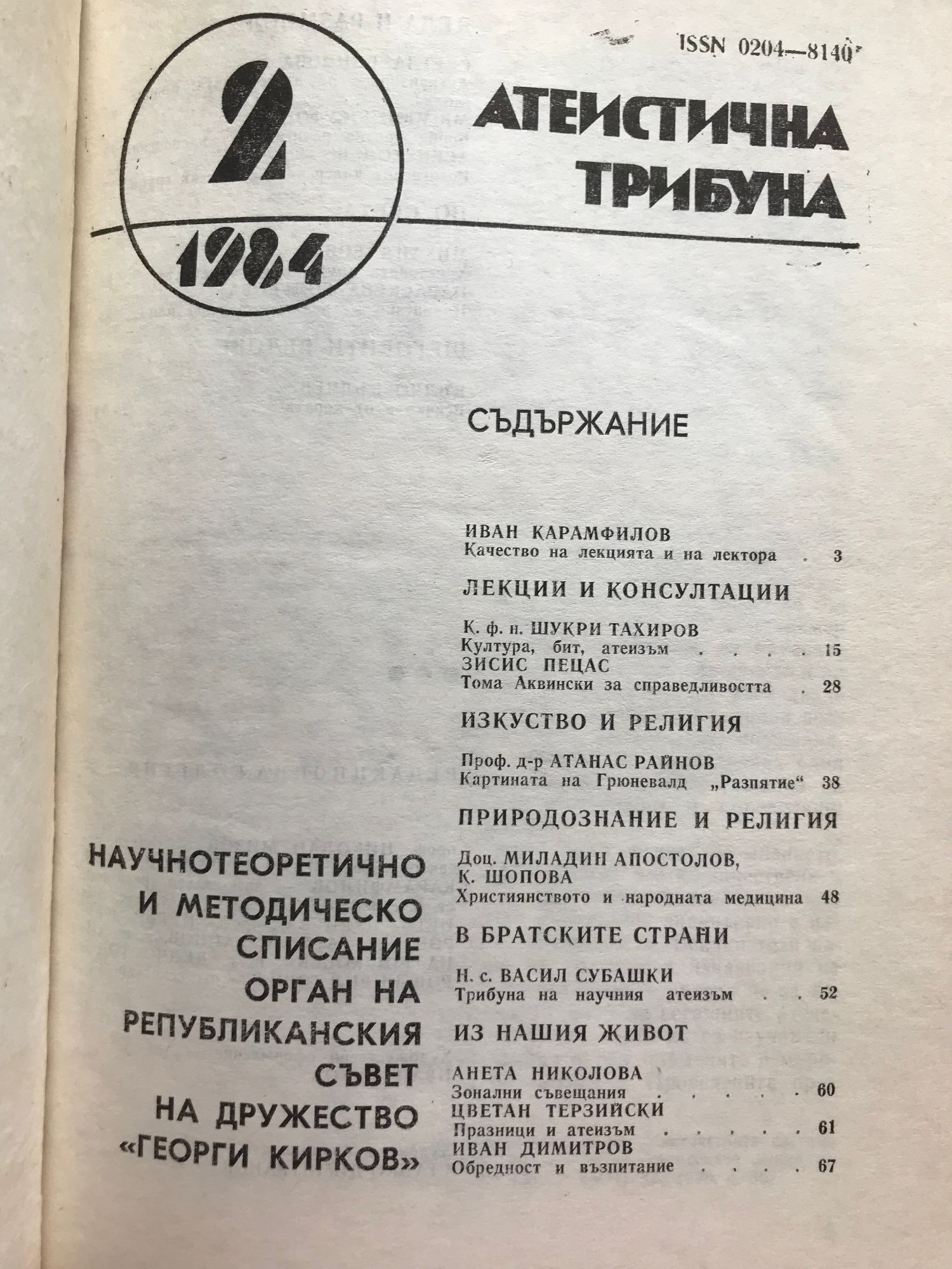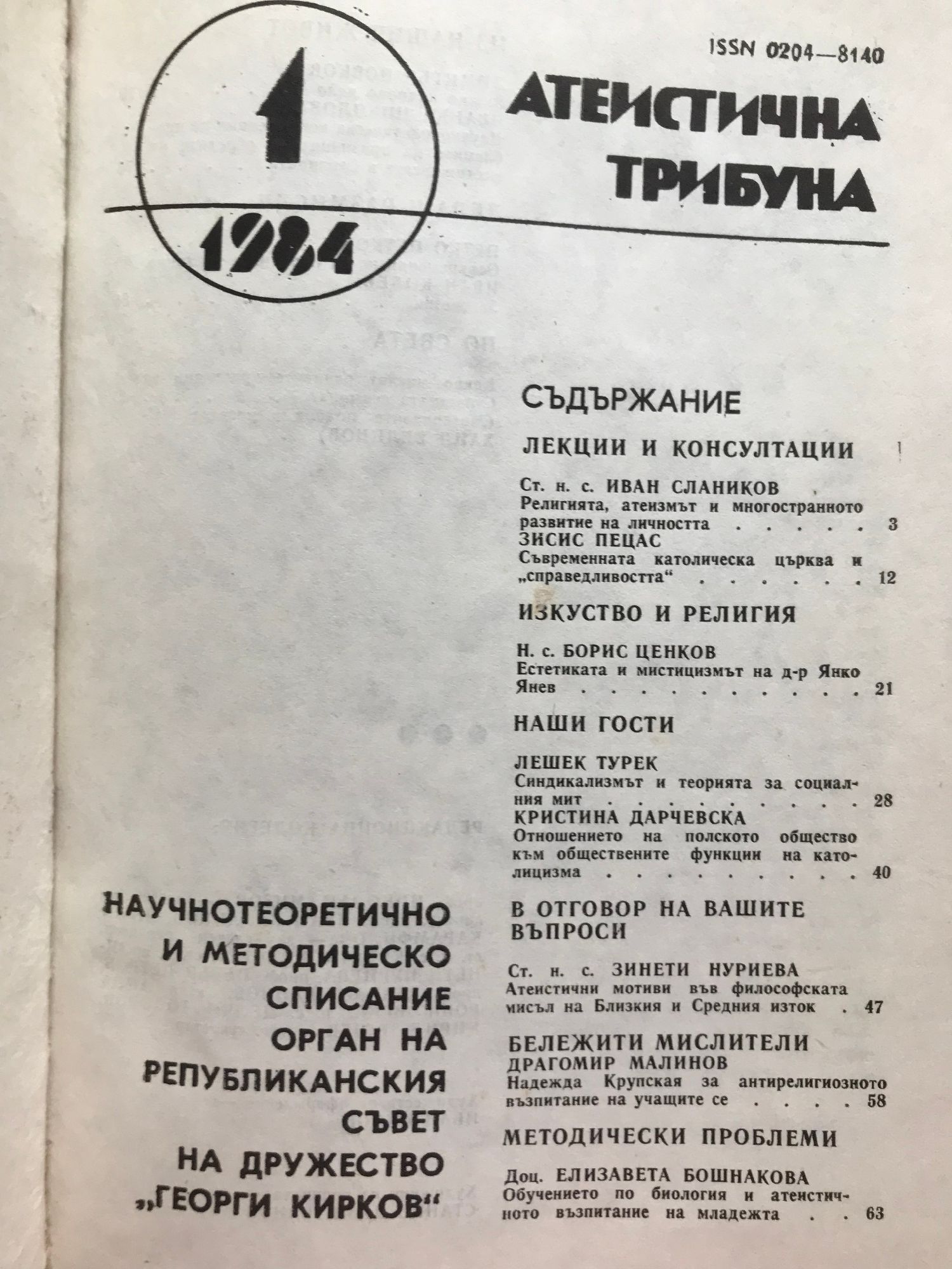 Научнотеоретично и методическо списание орган на републиканския съвет на дружество "Георги Кирков"