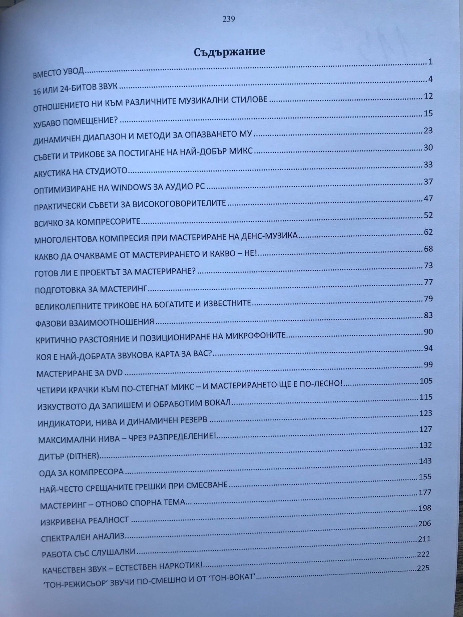 Тази книга наистина не е за всеки... Тя е предназначена само за музиканти, аудио-инженери, техници и някои други хора, които сериозно искат да се запознаят с онази "черна магия", наречена мастеринг на звукозаписи. Всъщност, на всеки е ясно, че в цялата поредица от процедури по мастерирането на звукозапис няма никаква магия - всичко е внимателно обмислено, защото е продиктувано от стремежа записът да стигне до слушателите не само с най-високото възможно качество, но и да въздейства по начина, който авторите на музиката са искали! Очевидно няма как да имаме претенции за изчерпателност, но сме се постарали да представим достатъчно детайлно най-важните елементи, като дори сме представили отговори на въпроси, които много продуценти, музиканти и инженери е възможно все още да не са се сетили да зададат! Ясно е, че съчетаването на естетически издържан артистизъм с умело ползване на съвременните технологични възможности си остава една от най-трудните задачи, но уверено можем да заявим, че днешните композитори, изпълнители, инженери и продуценти на музика са много по-добре подготвени от колегите си преди 50 години!