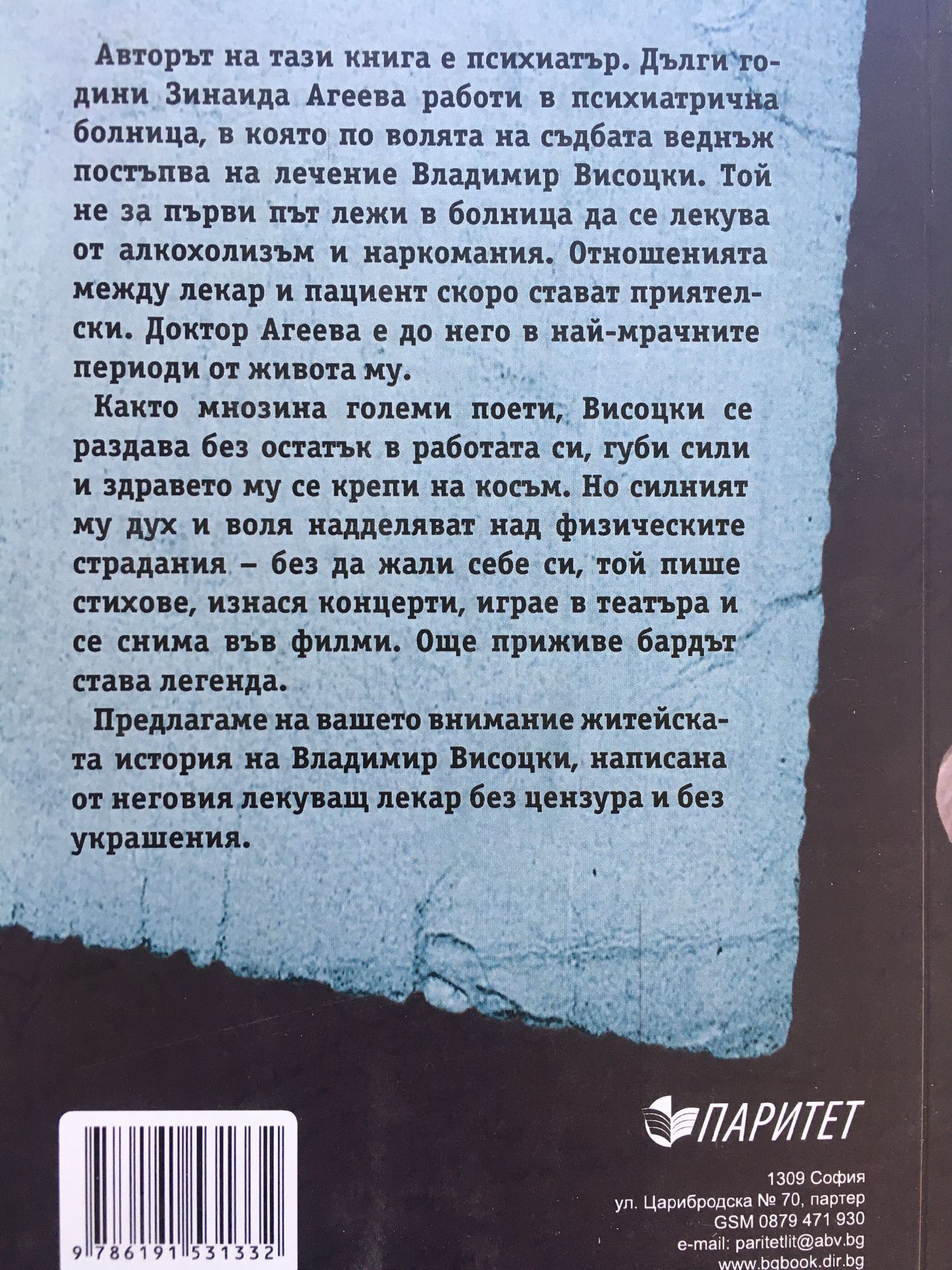 Авторът на тази книга е психиатър. Дълги години Зинаида Агеева работи в психиатрична болница, в която по волята на съдбата веднъж постъпва на лечение Владимир Висоцки. Той не за първи път лежи в болница да се лекува от алкохолизъм и наркомания. Отношенията между лекар и пациент скоро стават приятелски. Доктор Агеева е до него в най-мрачните периоди от живота му. Както мнозина големи поети, Висоцки се раздава без остатък в работата си, губи сили и здравето му се крепи на косъм. Но силният му дух и воля надделяват над физическите страдания – без да жали себе си, той пише стихове, изнася концерти, играе в театъра и се снима във филми. Още приживе бардът става легенда.