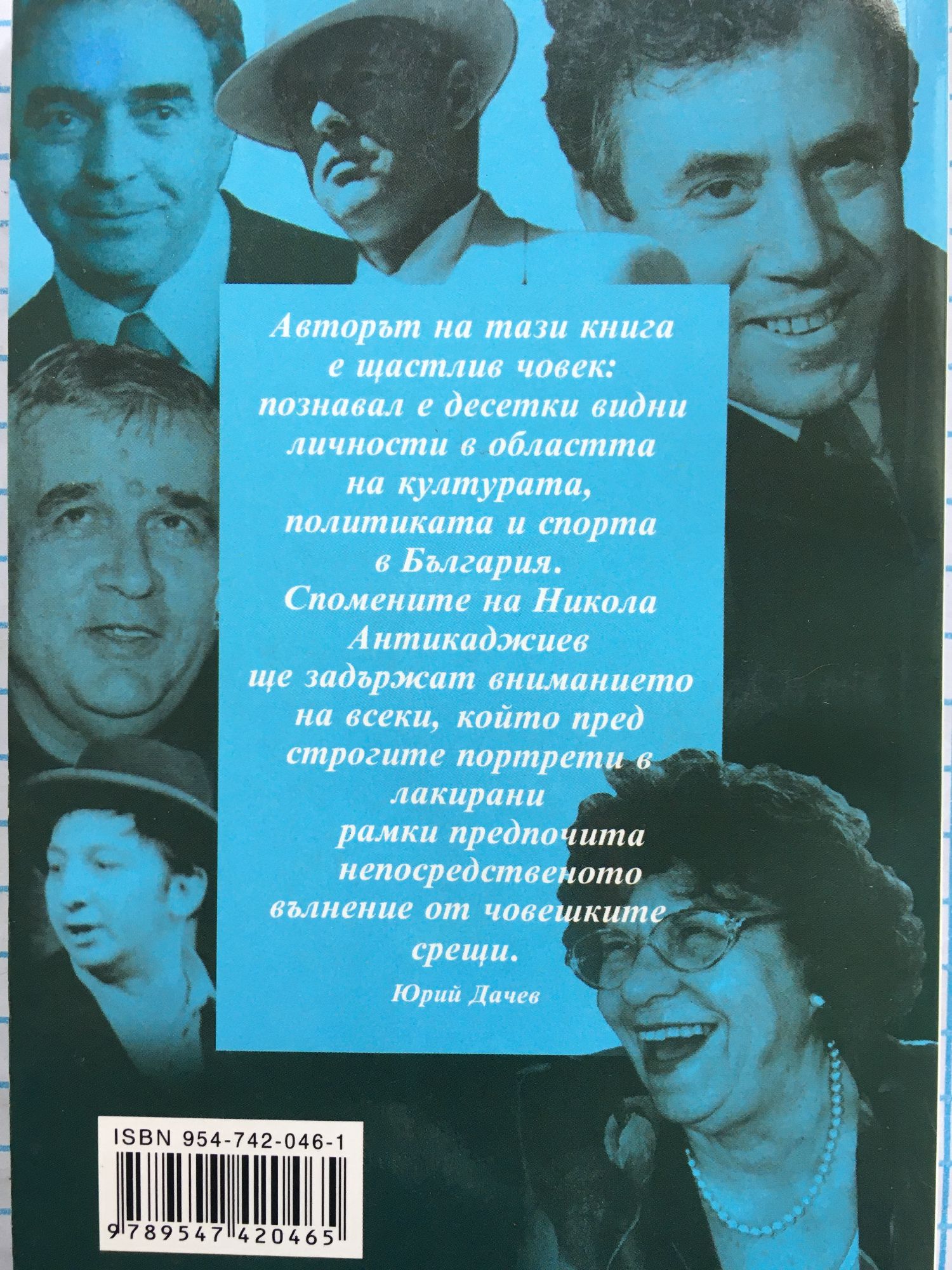 Авторът на тази книга е познавал десетки видни личности в областта на културата, политиката и спорта в България. Спомените на Никола Антикаджиев ще задържат вниманието на всеки, който пред строгите портрети в лакирани рамки предпочита непосредственото вълнение от човешките срещи.