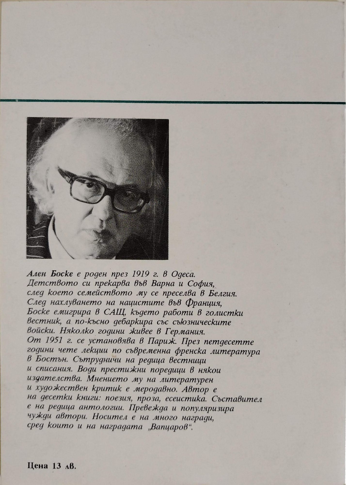 13,00 лв. / 6,65 €Отлично състояние на книжното тяло. Нова, незначителни следи от съхранение по кориците. С лично пожелание.