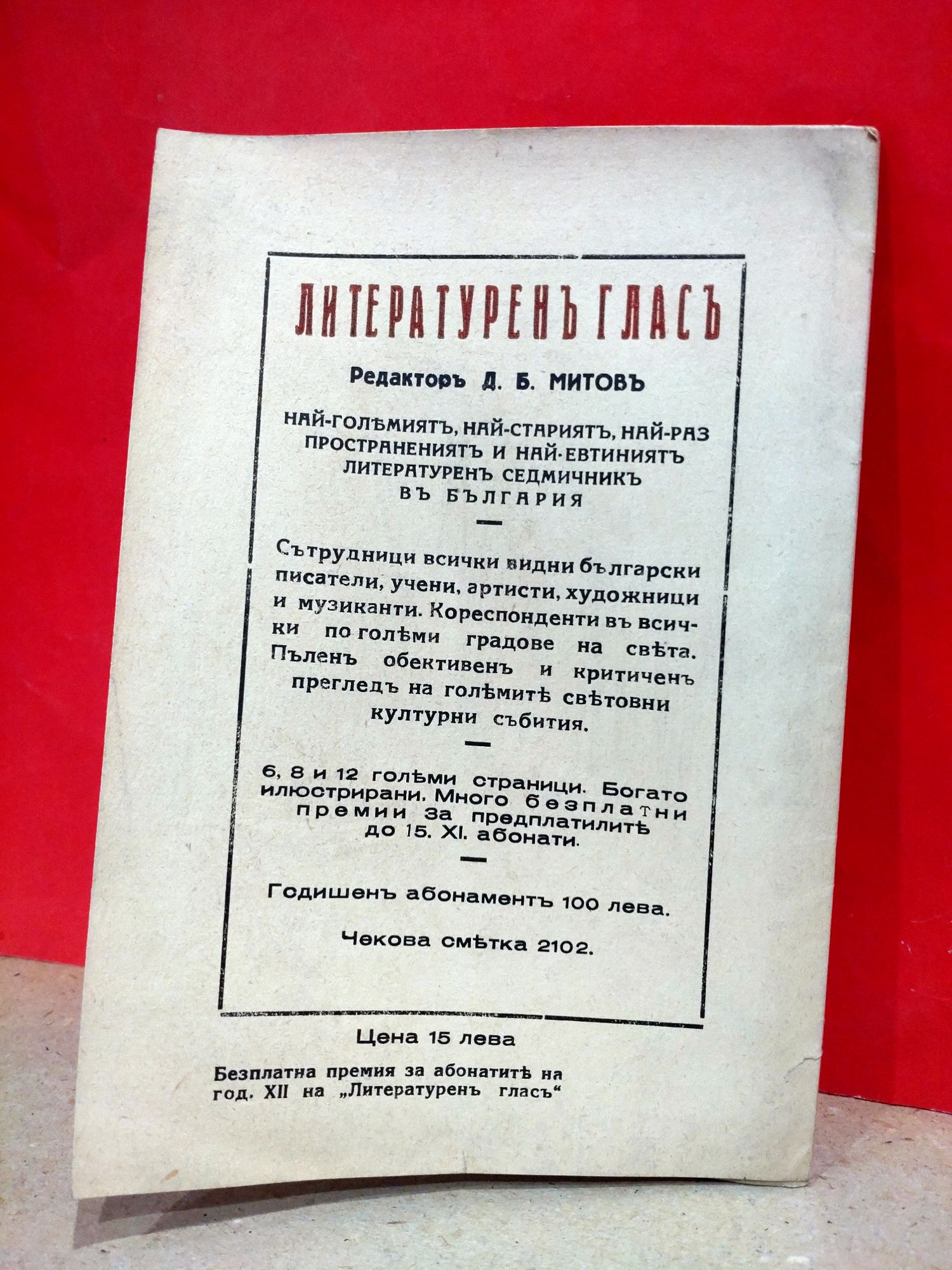 Премия за абонатите на год. XII на вестник „Литературен глас".