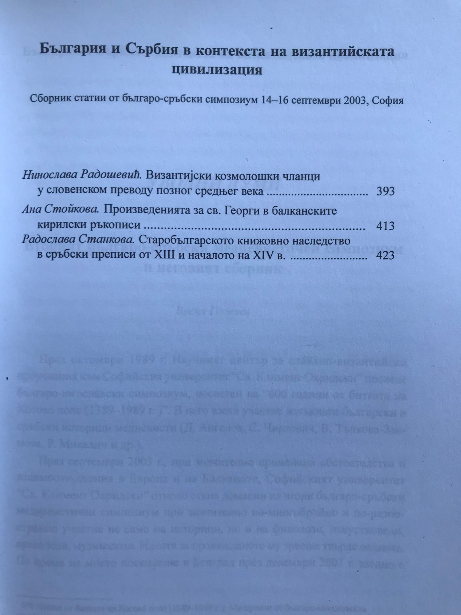 Сборник статии от българо-сръбски симпозиум 14 - 16 септември 2003, София