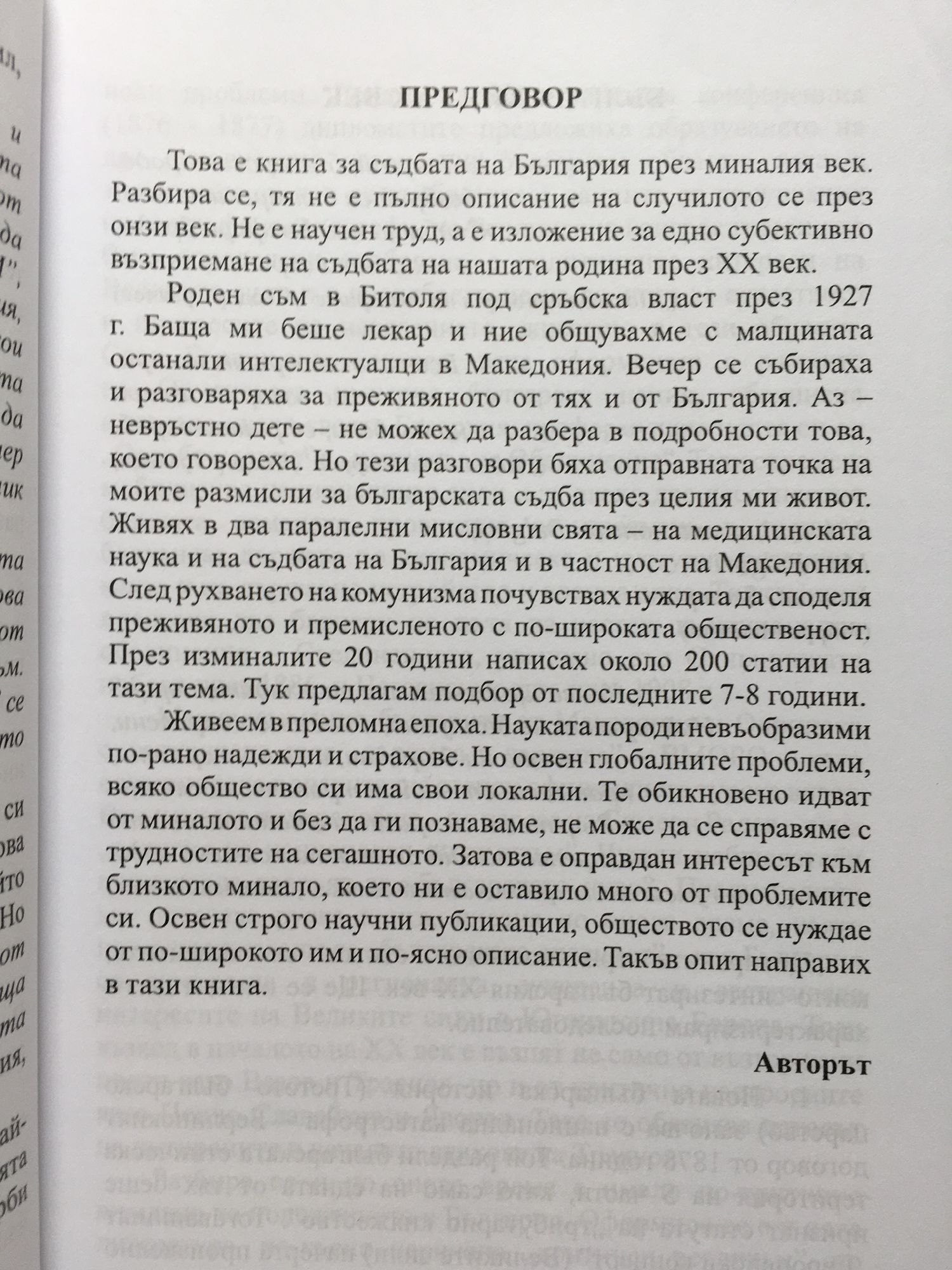 Книгата съдържа скрижалите на българщината. Но това не значи, че в нея звучат йерихонските тръби на шовинизма и омраза към съседите. Дори патриотичните подводни течения в текстовете са спокойни, непредизвикващи несъгласие дори и у най-крайните отрицатели на българската кауза в съвременен и в исторически план. "България през ХХ век" трябва да бъде прочетена от българските историци, политици, дипломати, литератори, журналисти, общественици, икономисти като учебник по толерантност, коректност, умереност и балансирано отношение към противниците в спора. Бележитият български учен професор Михаил Огнянов е роден в гр. Битоля, Македония. През детските и юношеските си години, минали в Кралство Югославия и в Албания, той е свидетел на насилията над съзнанието, езика и спомена за историческото минало на населението от този край.. След 1989 г. е редовен сътрудник на "Про & Анти" и "Детонация", където публикува много статии, посветени най-вече на Македония и на Балканите. Голяма част от тях са поместени в тази книга.