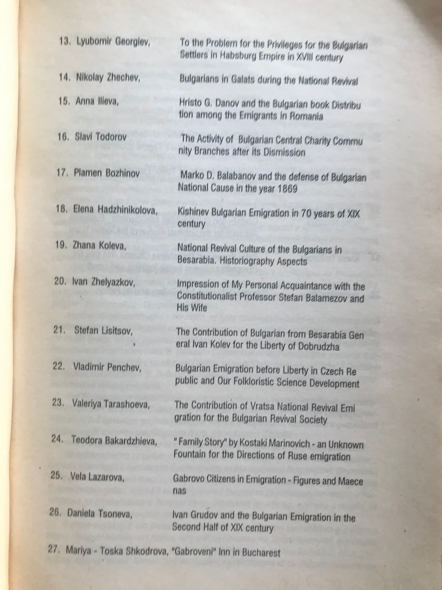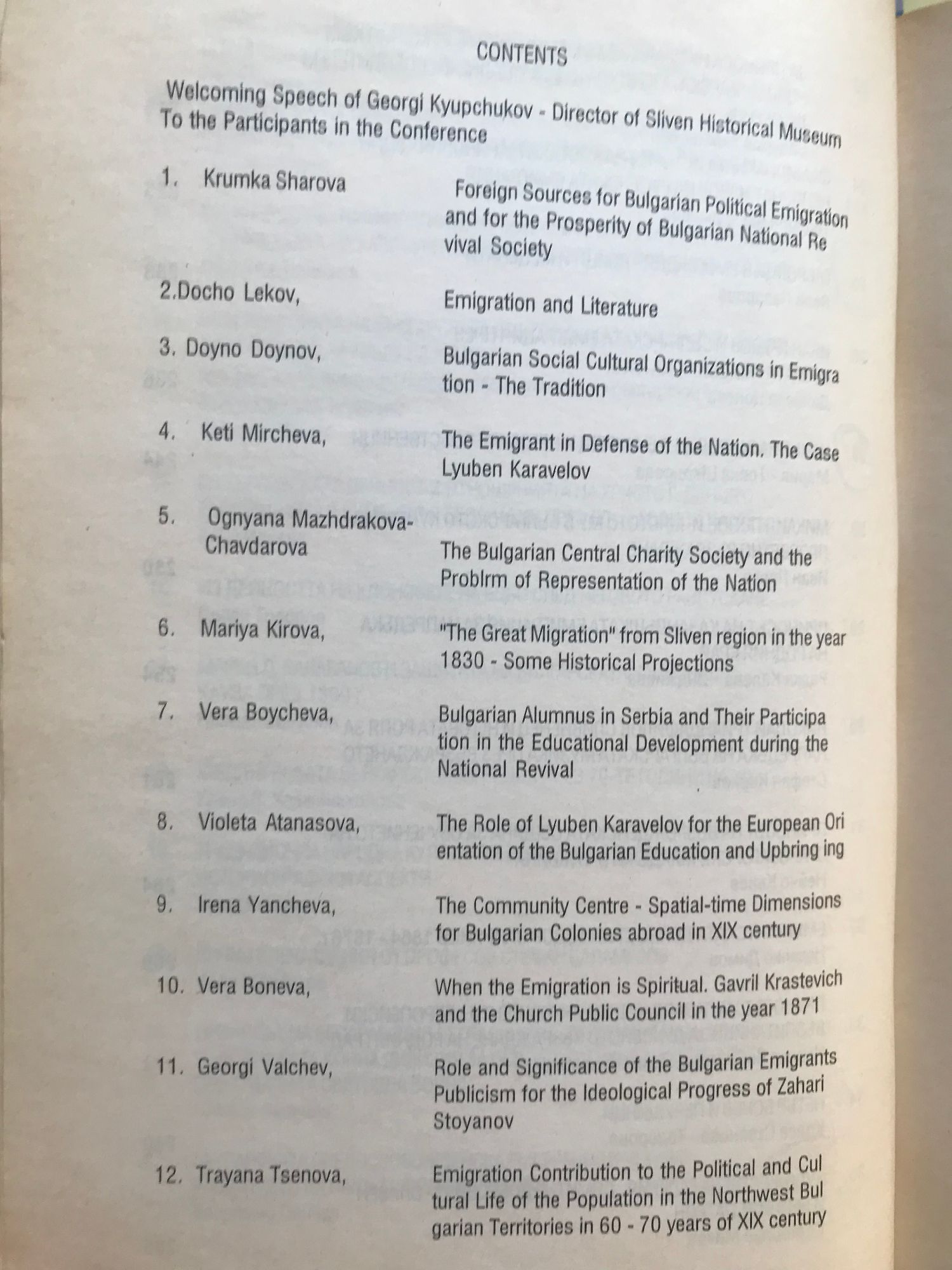 Сборник материали от Национална научна конференция с тема: "Ролята на възрожденската емиграция за напредъка на българската нация", проведена в Сливен на 13 и 14 октомври 1999 г.