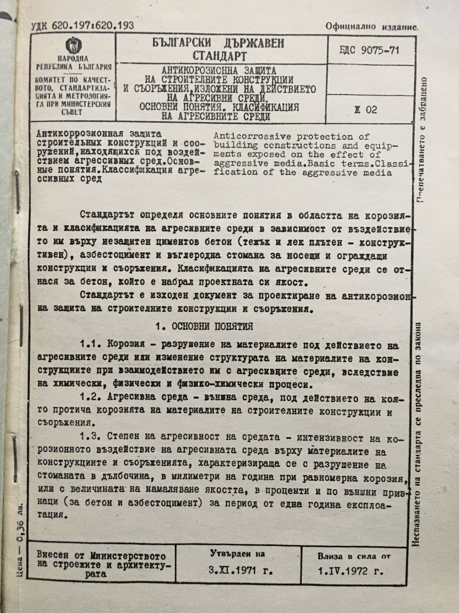 Антикорозиснна защита на строителните конструкции и съоръжения, изложени на действието на агресивни среди. Основни понятия. Класификация на агресивните среди