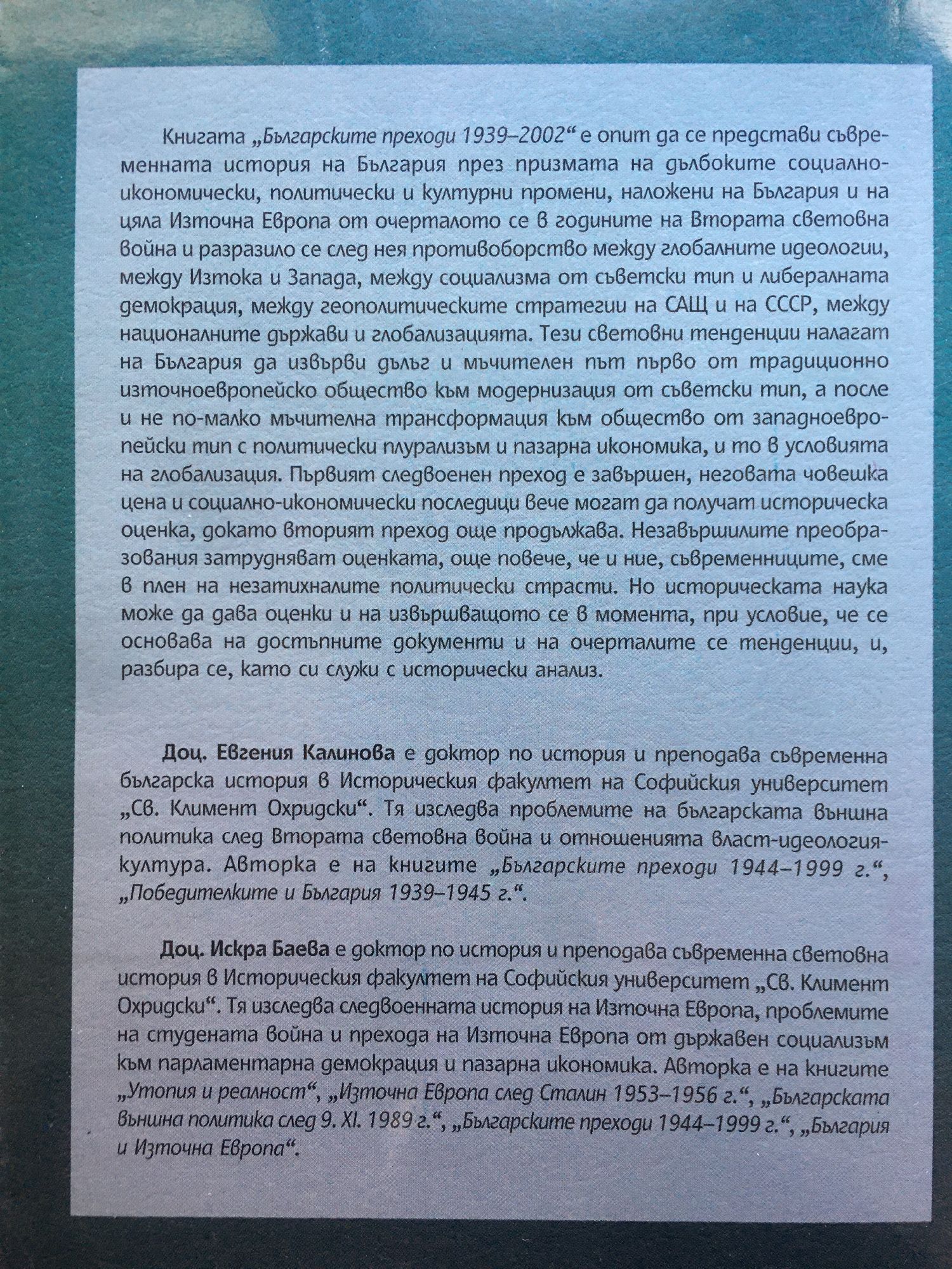 от доц. д-р. Евгения Калинова, доц. д-р. Искра Баева