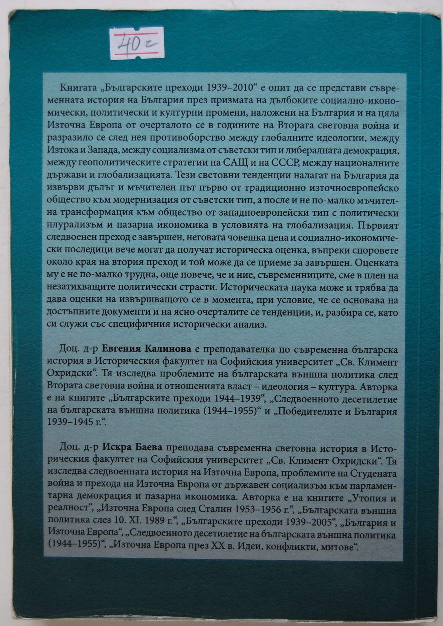 от Евгения Калинова, доц. д-р. Искра Баева