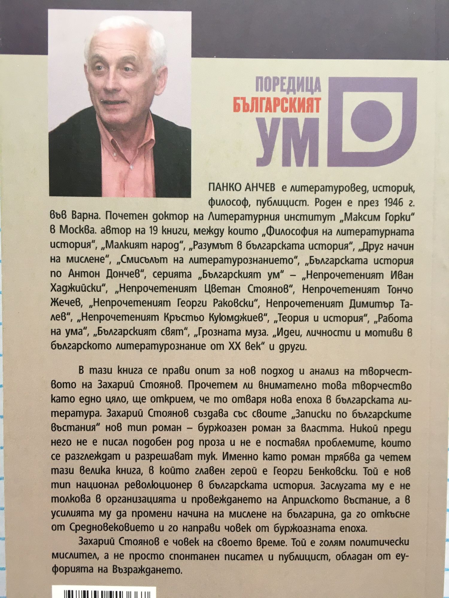 В тази книга се прави опит за нов подход и анализ на творчеството на Захарий Стоянов. Прочетем ли внимателно това творчество като едно цяло, ще открием, че то отваря нова епоха в българската литература. Захарий Стоянов създава със своите "Записки по българските въстания" нов тип роман - буржоазен роман на властта. Никой преди него не е писал подобен род проза и не е поставял проблемите, които се разглеждат и разрешават тук. Именно като роман трябва да четем тази велика книга, в който главен герой е Георги Бенковски. Той е нов тип национален революционер в българската история. Заслугата му е не толкова в организацията и провеждането на Априлското въстание, а и усилията му да промени начина на мислене на българина, да го откъсне от Средновековието и да го направи човек от буржоазната епоха. Захарий Стоянов е на своето време. Той е голям политически мислител, а не просто спонтанен писател и публицист, обладан от еуфорията на Възраждането.