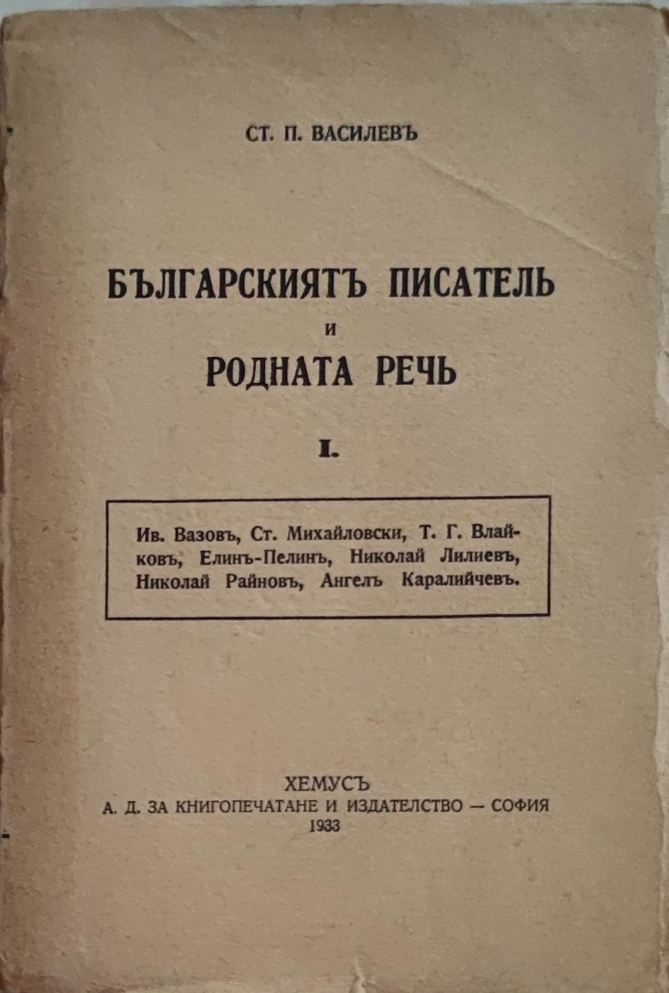 Българскиятъ писател и родната реч книга I