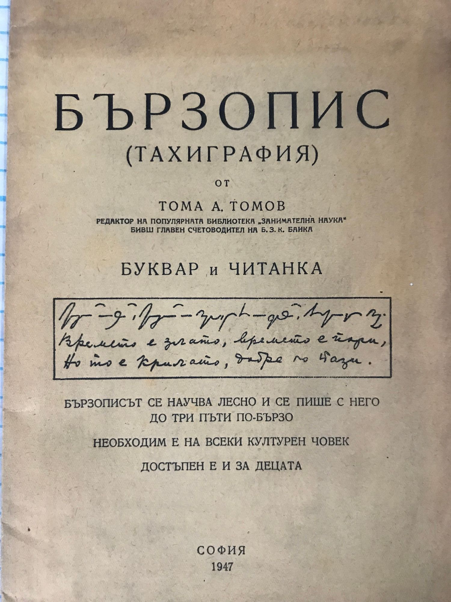 Бързописът се научава лесно и се пише с него до три пъти по-бързо. Необходим е на всеки културен човек. Достъпен е и за деца.