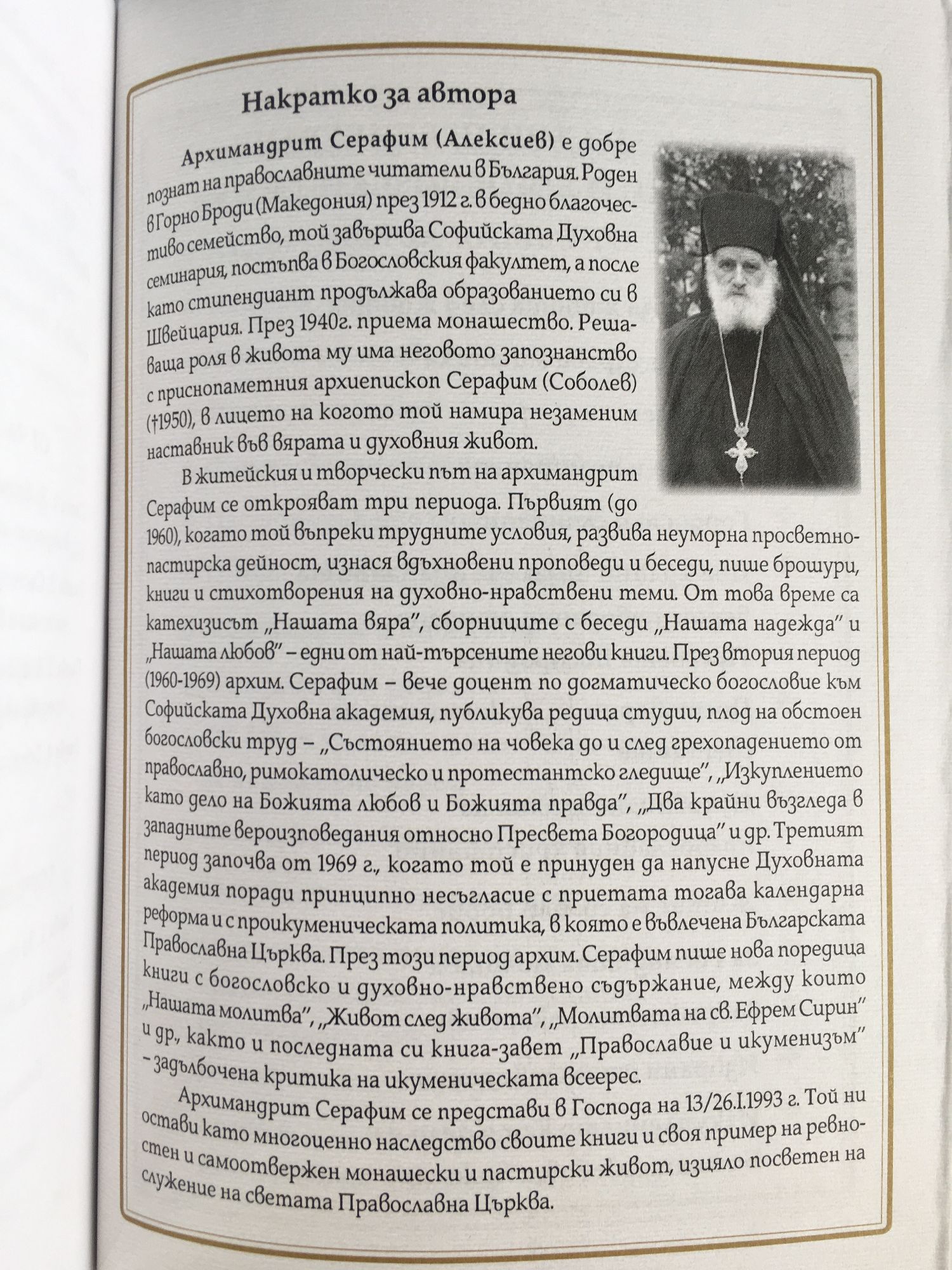 от Архимандрит Серафим