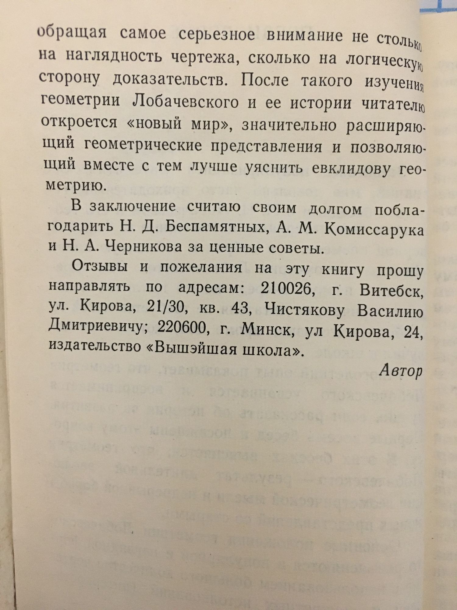 Беседы о геометрии Лобачевского