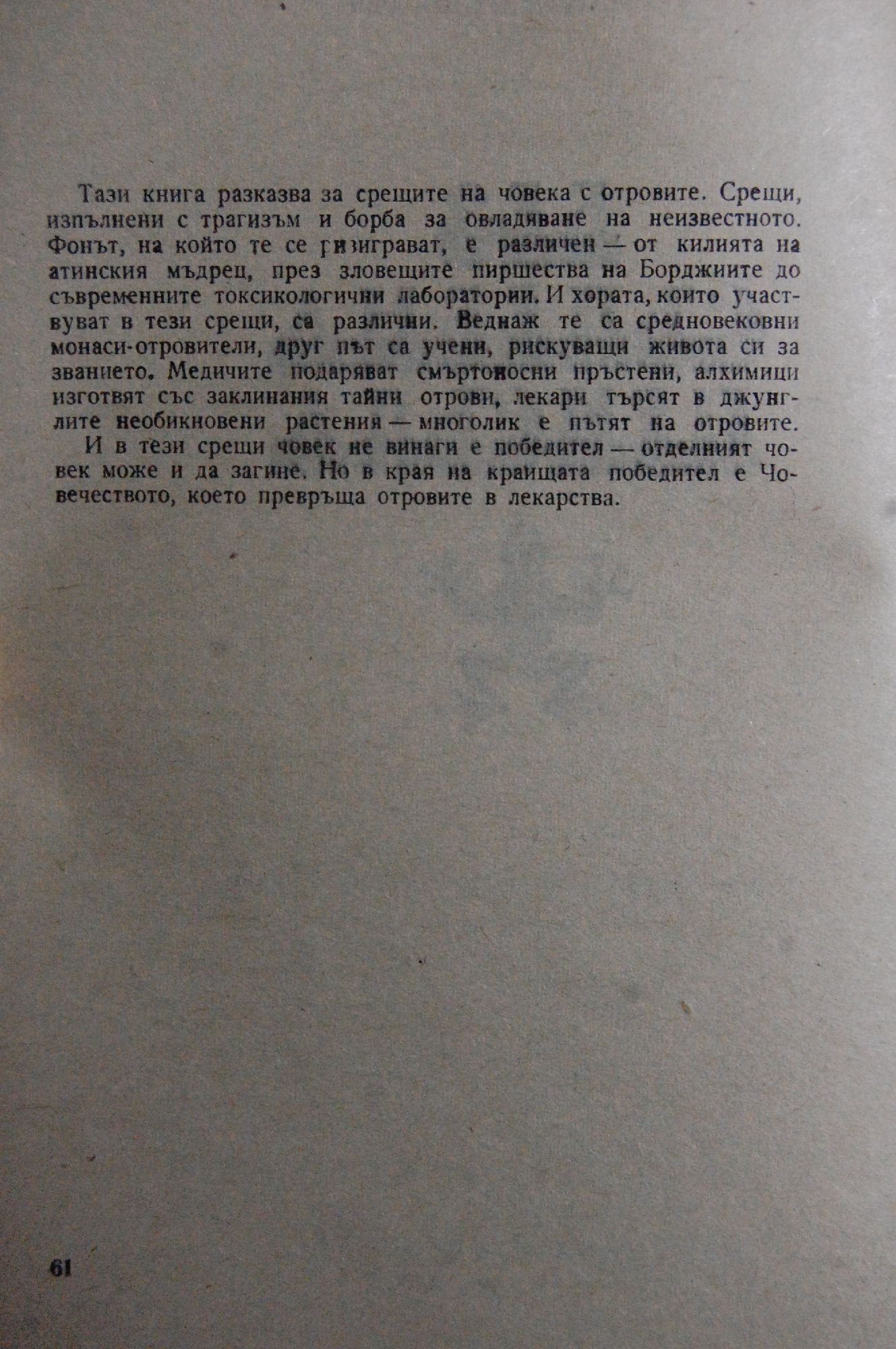 Тази книга разказва за срещите на човека с отровите.
