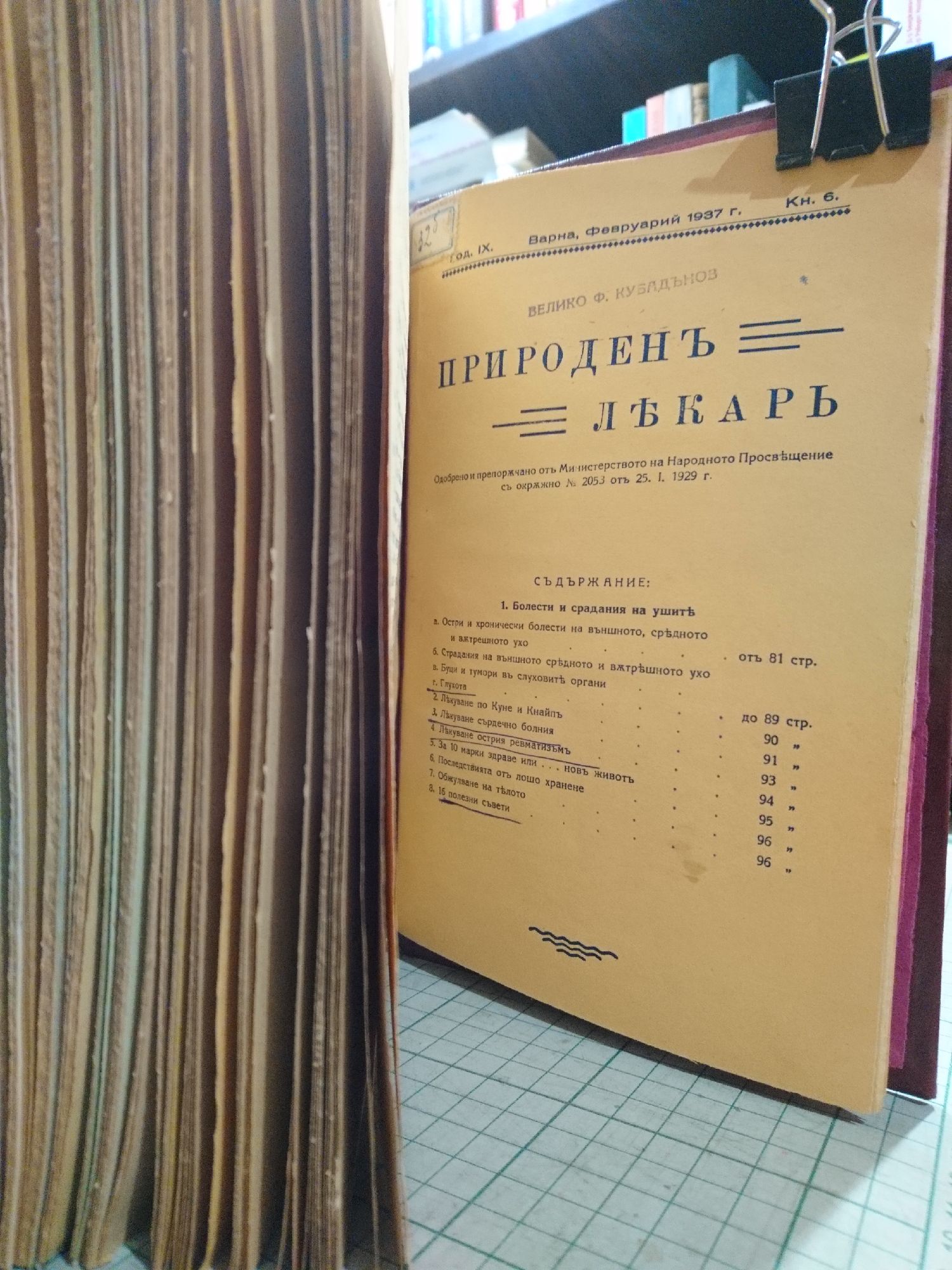 Сборник от различни издания, засягащи разнообразие от природни, билкови и медицински похвати при лечението на голям кръг от заболявания. Училищният лекар д-р Кирил Йорданов издава във Варна тези книжки с помощта на много съмишленици.