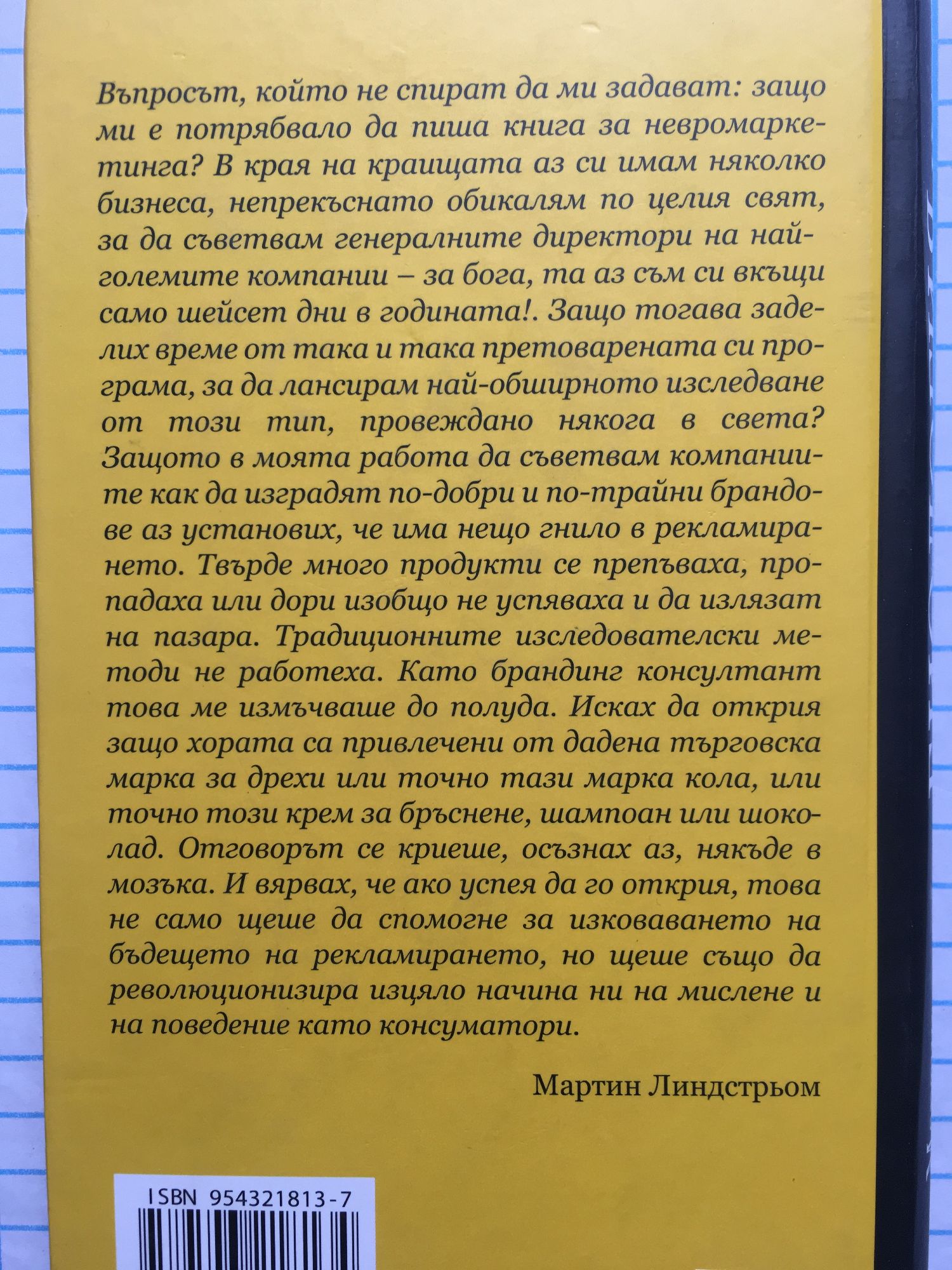 Въпросът, който не спират да ми задават: защо ми е потрябвало да пиша книга за невромаркетинга? В края на краищата аз си имам няколко бизнеса, непрекъснато обикалям по целия свят, за да съветвам генералните директори на най-големите компании – за бога, та аз съм си вкъщи само шейсет дни в годината! Защо тогава заделих време от така и така претоварената си програма, за да лансирам най-обширното изследване от този тип, провеждано някога в света? Защото в моята работа да съветвам компаниите как да изградят по-добри и по-трайни брандове аз установих, че има нещо гнило в рекламирането. Твърде много продукти се препъваха, пропадаха или дори изобщо не успяваха и да излязат на пазара. Традиционните изследователски методи не работеха. Като брандинг консултант това ме измъчваше до полуда. Исках да открия защо хората са привлечени от дадена търговска марка за дрехи или точно тази марка кола, или точно този крем за бръснене, шампоан или шоколад. Отговорът се криеше, осъзнах аз, някъде в мозъка. И вярвах, че ако успея да го открия, това не само щеше да спомогне за изковаването на бъдещето на рекламирането, но щеше също да революционизира изцяло начина ни на мислене и на поведение като консуматори.
