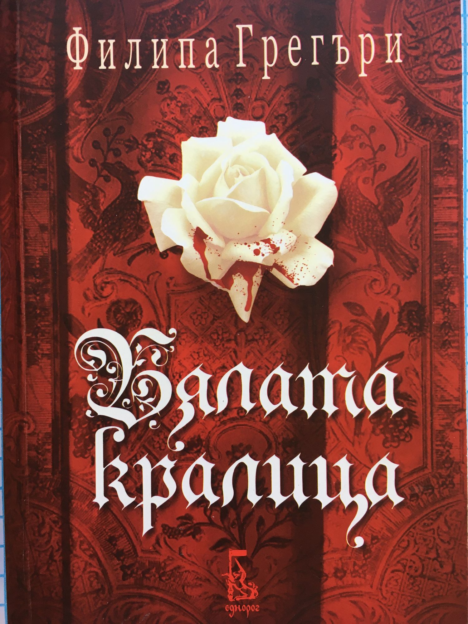 Филипа Грегъри представя първото заглавие от една нова поредица, посветена на Войната на Розите, потопила Англия в кръв. Историята на тази драматична и тайнствена епоха, изпълнена с жестоки сражения, съдбовна любов, магия и неразрешени загадки, ще бъде представена през погледа на жените от родовете Йорк и Ланкастър. Първа започва своя разказ Елизабет Удвил, прочутата с красотата си съпруга на Едуард ІV, “Бялата кралица”. Брат се обръща срещу брата в ожесточеното преследване на английската корона. Династията Плантагенет се разкъсва от вътрешни вражди. Носят се слухове, че преди битката, завършила с победа за фамилията Йорк и разгром за Ланкастър, в небето греели три слънца – по едно за тримата сина на стария Йоркски херцог – и тримата орисани да бъдат крале, и тримата орисани да загинат млади, последни от своя род и своята династия. Красивата история на любовта между бедната вдовица Елизабет Удвил и красивия, смел и обичан от народа крал Едуард ІV е обречена на трагичен край. Елизабет е коронясана за английска кралица в тежки времена, когато никой не може да вярва на никого. Но тя се бори за себе си и за бъдещето на децата си, най-вече на двамата си сина, престолонаследниците, бъдещето на династията. Една отчаяна жена ще отправи страшно проклятие, което ще бележи бъдещето на Англия за стотици години напред. Плантагенетите ще отминат в мъглите на времето, и ще отнесат със себе си решението на най-прочутата неразрешена загадка на историята.