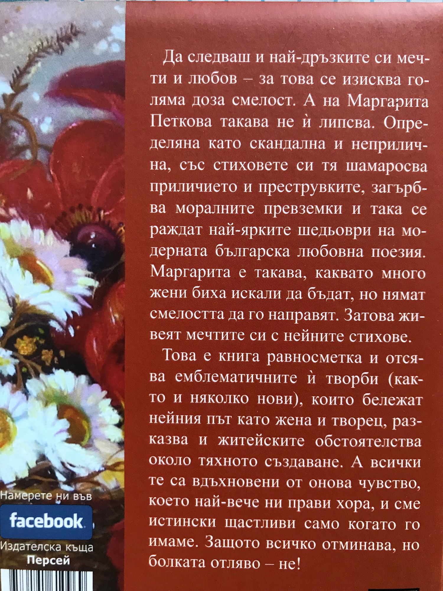 Да следваш и най-дръзките си мечти и любов - за това се изисква голяма доза смелост. А на Маргарита Петкова такава не й липсва. Определяна като скандална и неприлична, със стиховете си тя шамаросва приличието и преструвките, загърбва моралните превземки и така се раждат най-ярките шедьоври на модерната българска любовна поезия. Маргарита е такава, каквато много жени биха искали да бъдат, но нямат смелостта да го направят. Затова живеят мечтите си с нейните стихове.