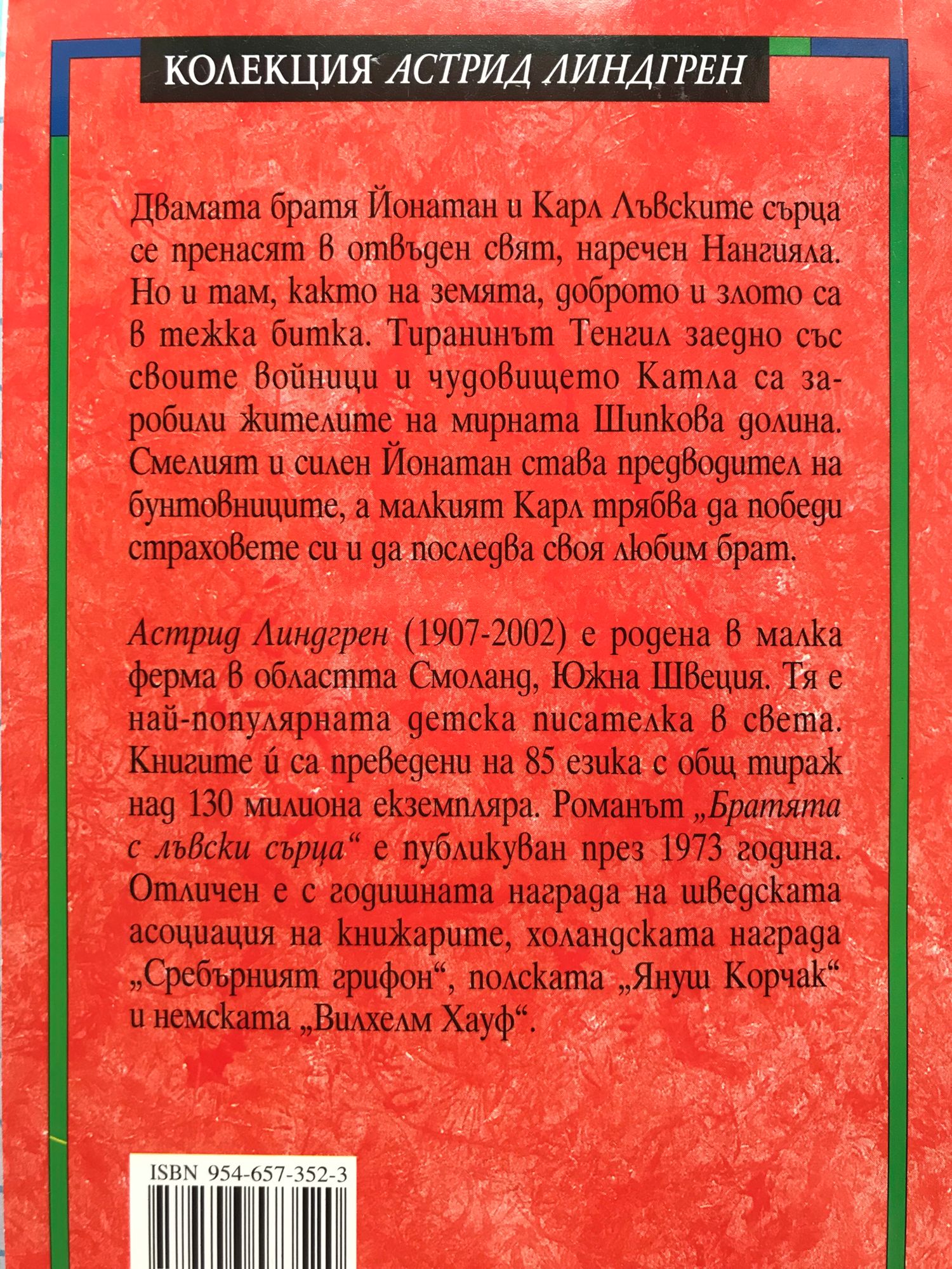 Двамата братя Йонатан и Карл Лъвските сърца се пренасят в отвъден свят, наречен Нангияла. Но и там, както и на земята, доброто и злото са в тежка битка. Тиранинът Тенгил заедно със своите войници и чудовището Катла са заробили жителите на мирната Шипкова долина. Смелият и силен Йонатан става пътеводител на бунтовниците, а малкият Карл трябва да победи страховете си и да последва своя любим брат.
