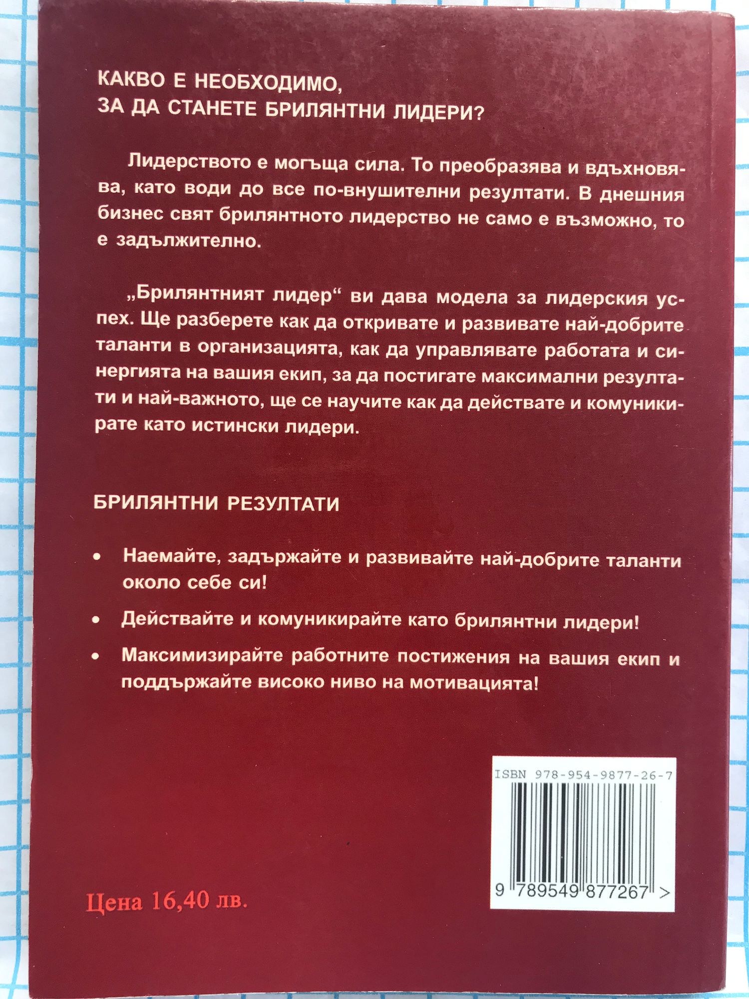 Какво е необходимо, за да станете брилянтни лидери? Лидерството е могъща сила. То преобразява и вдъхновява, като води до все по-внушителни резултати. В днешния бизнес свят брилянтното лидерство не само е възможно, то е задължително. "Брилянтният лидер" ви дава модела за лидерския успех. Ще разберете как да откривате и развивате най-добрите таланти в организацията, как да управлявате работата и синергията на вашия екип, за да постигате максимални резултати и най-важното, ще се научите как да действате и комуникирате като истински лидери.