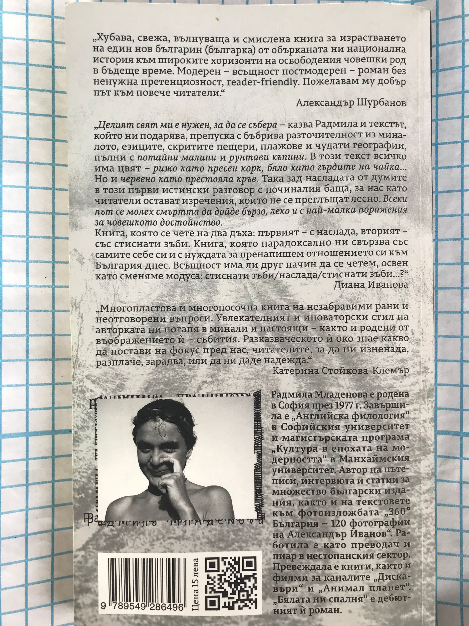 Хубава, свежа, вълнуваща и смислена книга за израстването на един нов българин /българка/ от обърканата ни национална история към широките хоризонти на освободения човешки род в бъдеще време. Модерен - всъщност постмодерен - роман без ненужна претенциозност. /Александър Шурбанов/ Многопластова и многопосочна книга на незабравими рани и неотговорени въпроси. Увлекателният и иноваторски стил на авторката ни потапя в минали и настоящи - както и родени от въображението й - събития. Разказваческото й око знае какво да постави на фокус пред нас, читателите, за да ни изненада, разплаче, зарадва, или да ни даде надежда. /Катерина Стойкова/