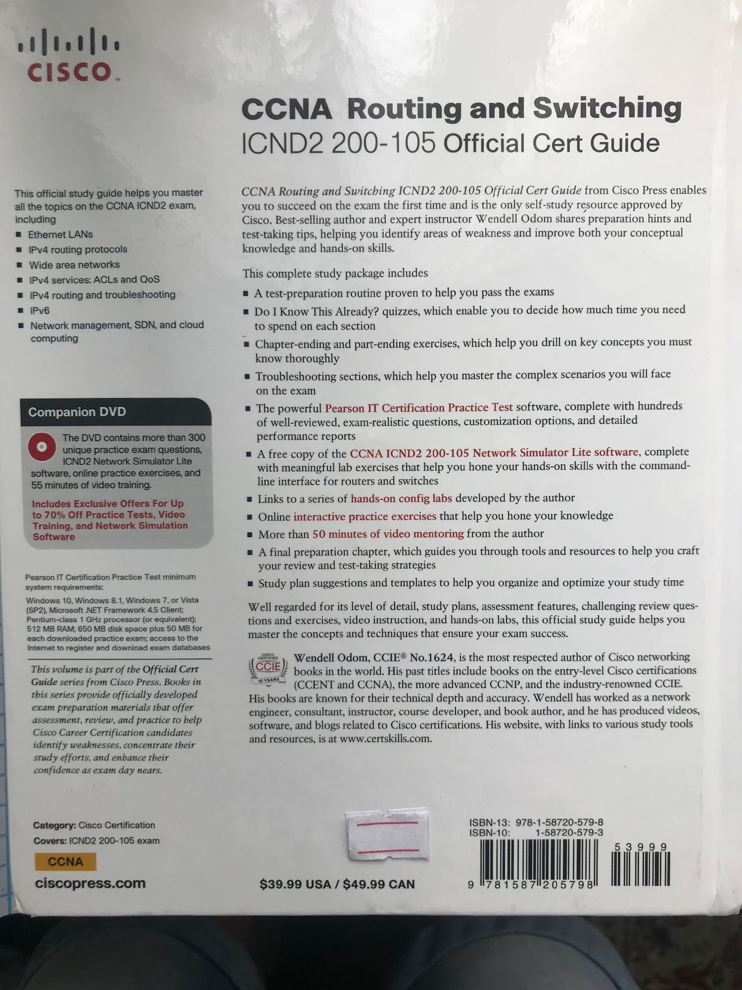 This complete study package includes · A test-preparation routine proven to help you pass the exams · "Do I Know This Already?" quizzes, which enable you to decide how much time you need to spend on each section · Chapter-ending and part-ending exercises, which help you drill on key concepts you must know thoroughly · Troubleshooting sections, which help you master the complex scenarios you will face on the exam · The powerful Pearson IT Certification Practice Test software, complete with hundreds of well-reviewed, exam-realistic questions, customization options, and detailed performance reports · A free copy of the CCNA ICND2 200-105 Network Simulator Lite software, complete with meaningful lab exercises that help you hone your hands-on skills with the command-line interface for routers and switches · Links to a series of hands-on config labs developed by the author · Online interactive practice exercises that help you hone your knowledge · More than 50 minutes of video mentoring from the author · A final preparation chapter, which guides you through tools and resources to help you craft your review and test-taking strategies · Study plan suggestions and templates to help you organize and optimize your study time Well regarded for its level of detail, study plans, assessment features, challenging review questions and exercises, video instruction, and hands-on labs, this official study guide helps you master the concepts and techniques that ensure your exam success.