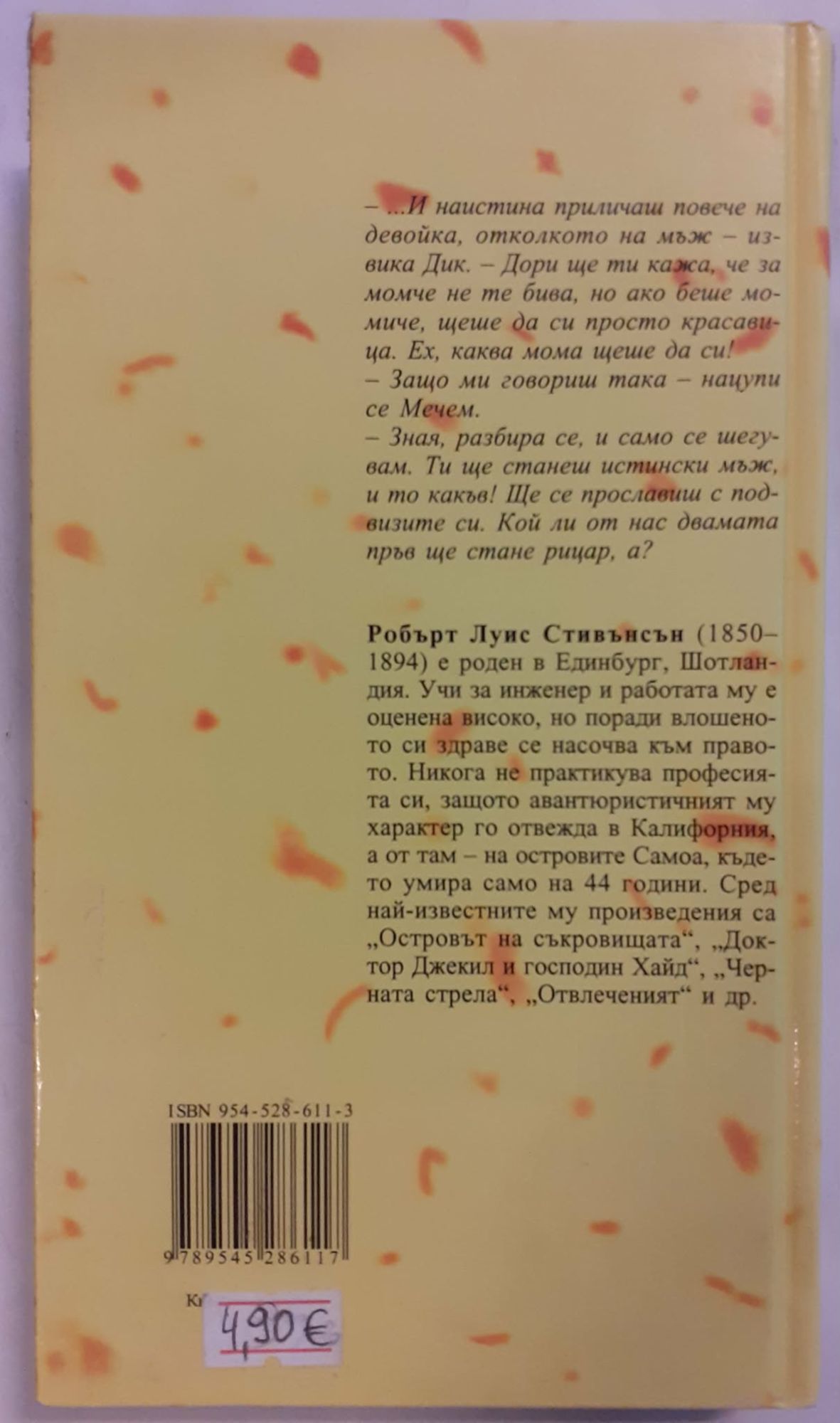 4,90 € / 9,58 лв.Много добро състояние на книжното тяло. С леки следи в горните ъгли и отчасти по заден ръб на корицата