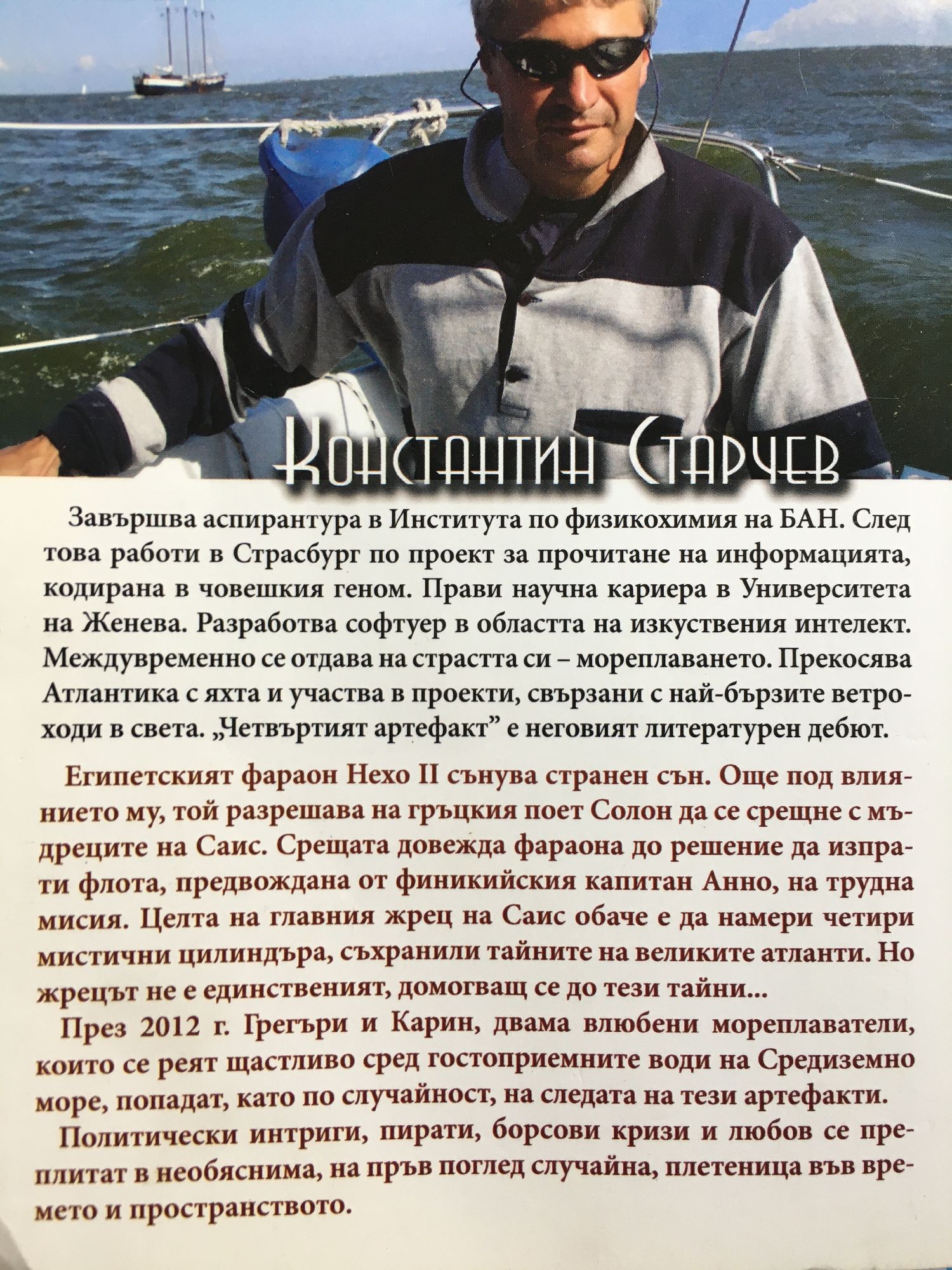 Египетският фараон Нехо II сънува странен сън. Още под влиянието му той разрешава на гръцкия поет Солон да се срещне с мъдреците на Саис. Попаднал в политическа клопка, фараонът решава да изпрати флота, предвождана от финикийския капитан Анно, да обиколи Африка, считайки, че този подвиг ще го постави редом до най-прочутите владетели на света. Нехо не подозира, че целта на Преспухаменон, главния жрец на Саис, е различна: да намери четири мистични цилиндъра, съхранили тайните на великите атланти. Но Преспухаменон не е единственият, домогващ се до тези тайни. През 2012 г. Грегъри и Карин, двама влюбени мореплаватели, които се реят щастливо сред гостоприемните води на Средиземно море, попадат, като по случайност, на следата на тези артефакти. Политически интриги, пирати, борсови кризи и любов се преплитат в необяснима, на пръв поглед случайна, плетеница във времето и пространството.