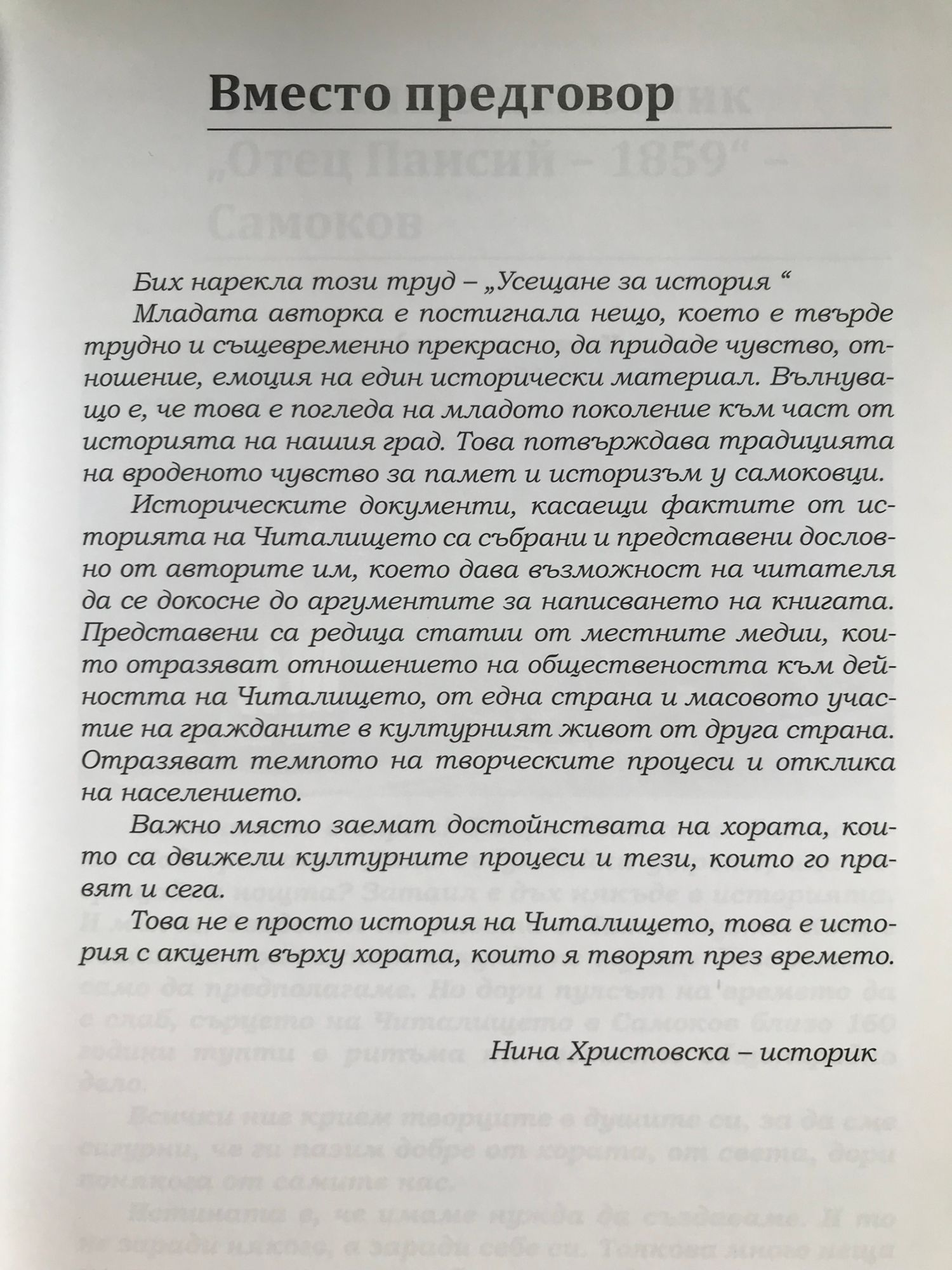 Издава се по повод 160-годишнината на Читалище-паметник "Отец Паисий - 1859"