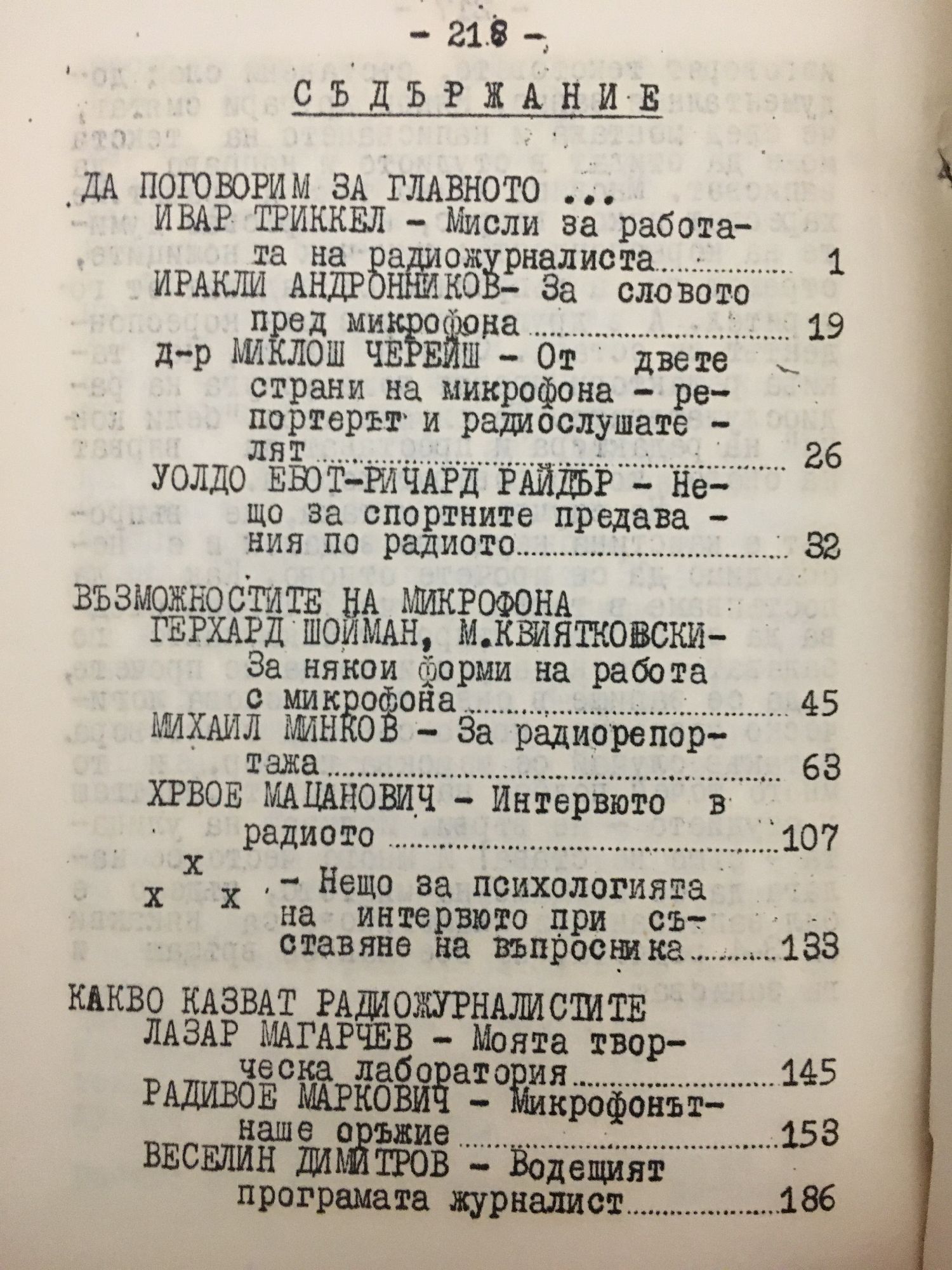 Сборник статии за работата с хората пред микрофона, характерни жанрове и форми на работа с микрофона и опита на радиорепортери