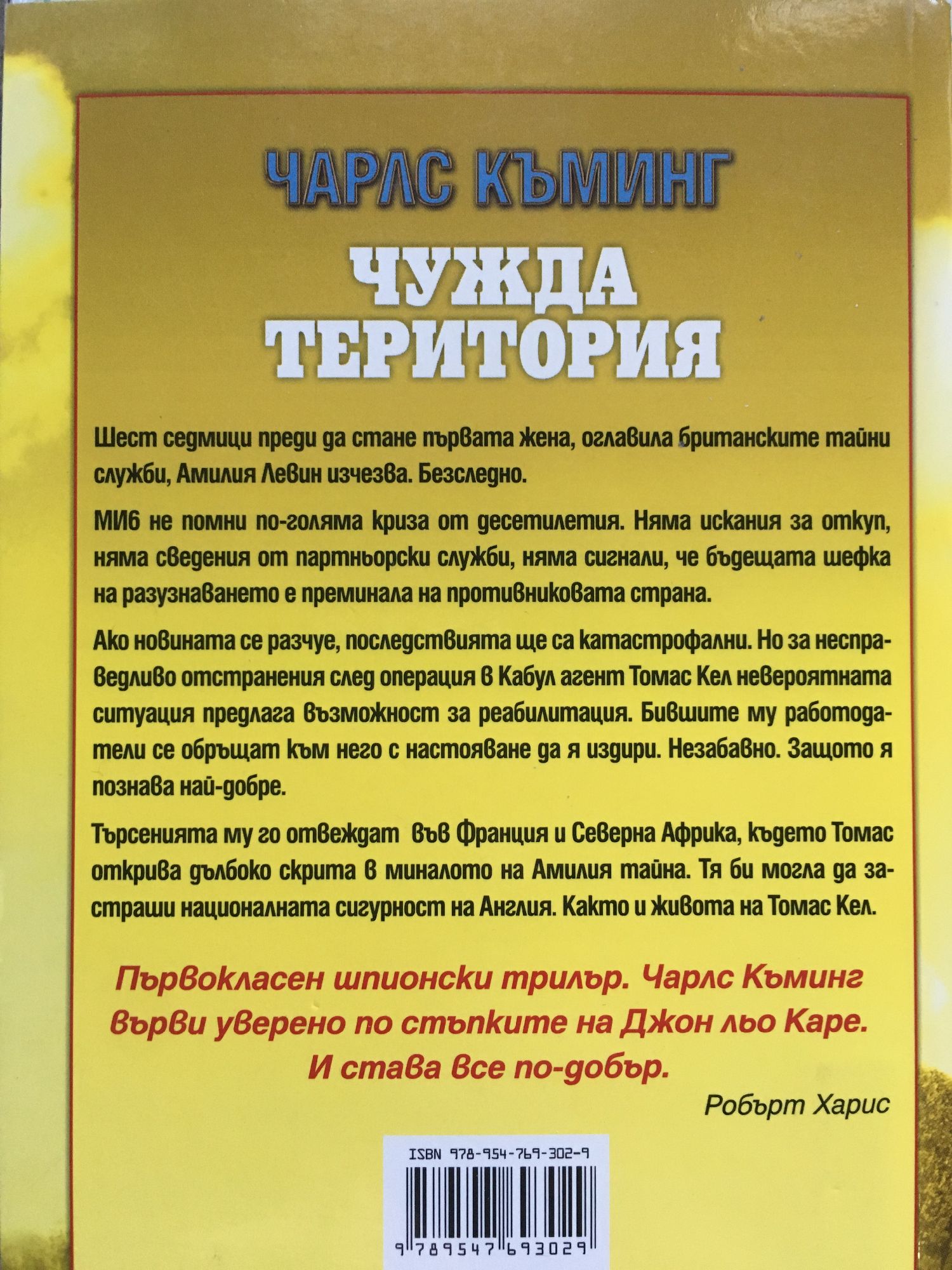 Авторът на „Шесторката от Кеймбридж” Шест седмици преди да стане първата жена, оглавила британските разузнавателни служби, Амилия Левин изчезва. Безследно. МИ6 не помни по-голяма криза от десетилетия. Няма искания за откуп, няма сведения от партньорски служби, няма сигнали, че бъдещата шефка на тайните служби е преминала на противниковата страна. Ако новината се разчуе, последствията ще са катастрофални. Но за несправедливо отстранения след операция в Кабул агент Томас Кел невероятната ситуация предлага възможност за реабилитация. Бившите му работодатели се обръщат към него с настояване да я открие. Незабавно. Защото я познава най-добре. Търсенията му го отвеждат във Франция и Северна Африка, където Томас открива дълбоко скрита в миналото на Амилия тайна. Тя би могла да застраши националната сигурност на Англия. Както и живота на Томас Кел. Първокласен шпионски трилър. Чарлс Къминг върви уверено по стъпките на Джон льо Каре. И става все по-добър. Робърт Харис