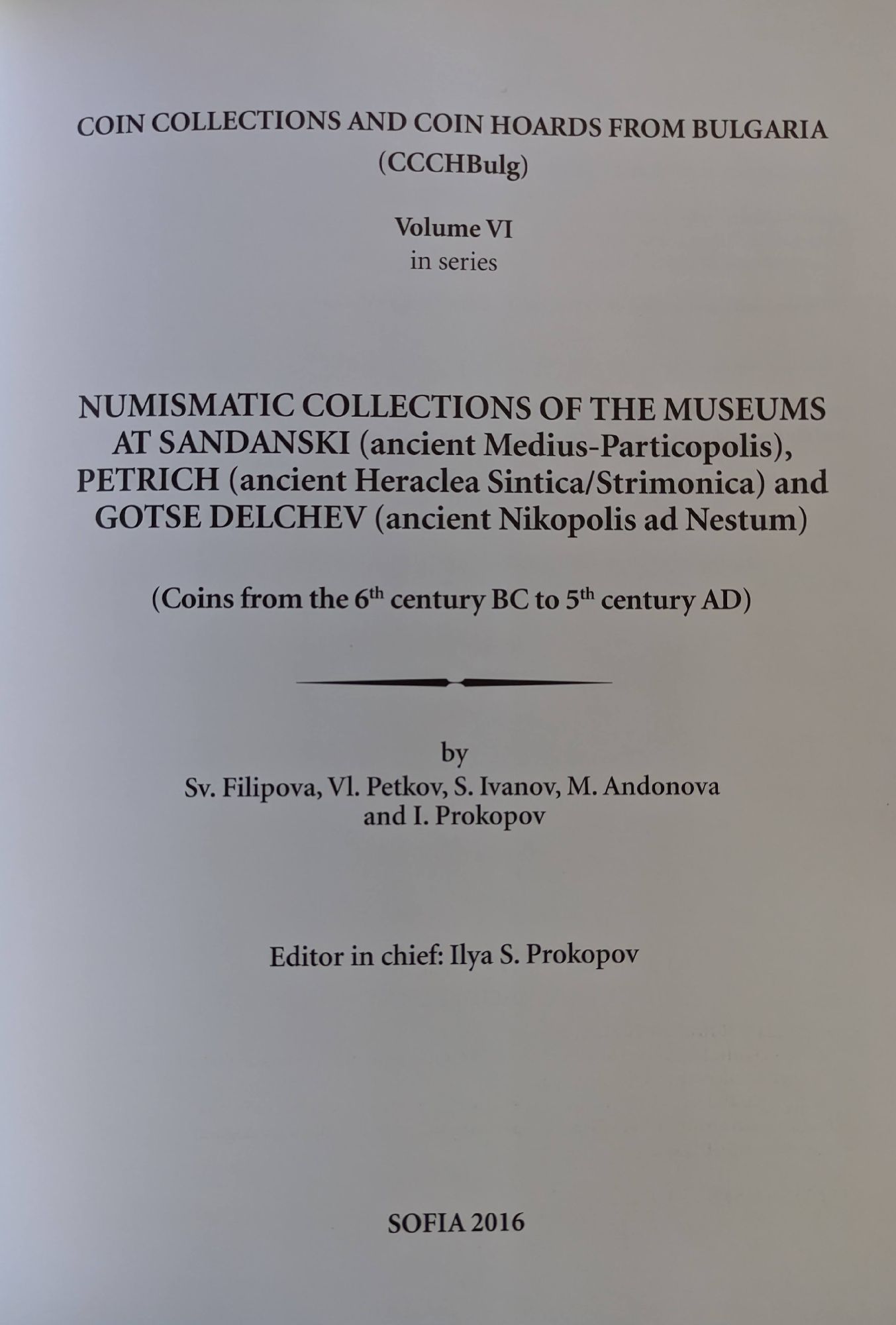 COIN COLLECTIONS AND COIN HOARDS FROM BULGARIA (CCCHBulg), Volume VI, in series