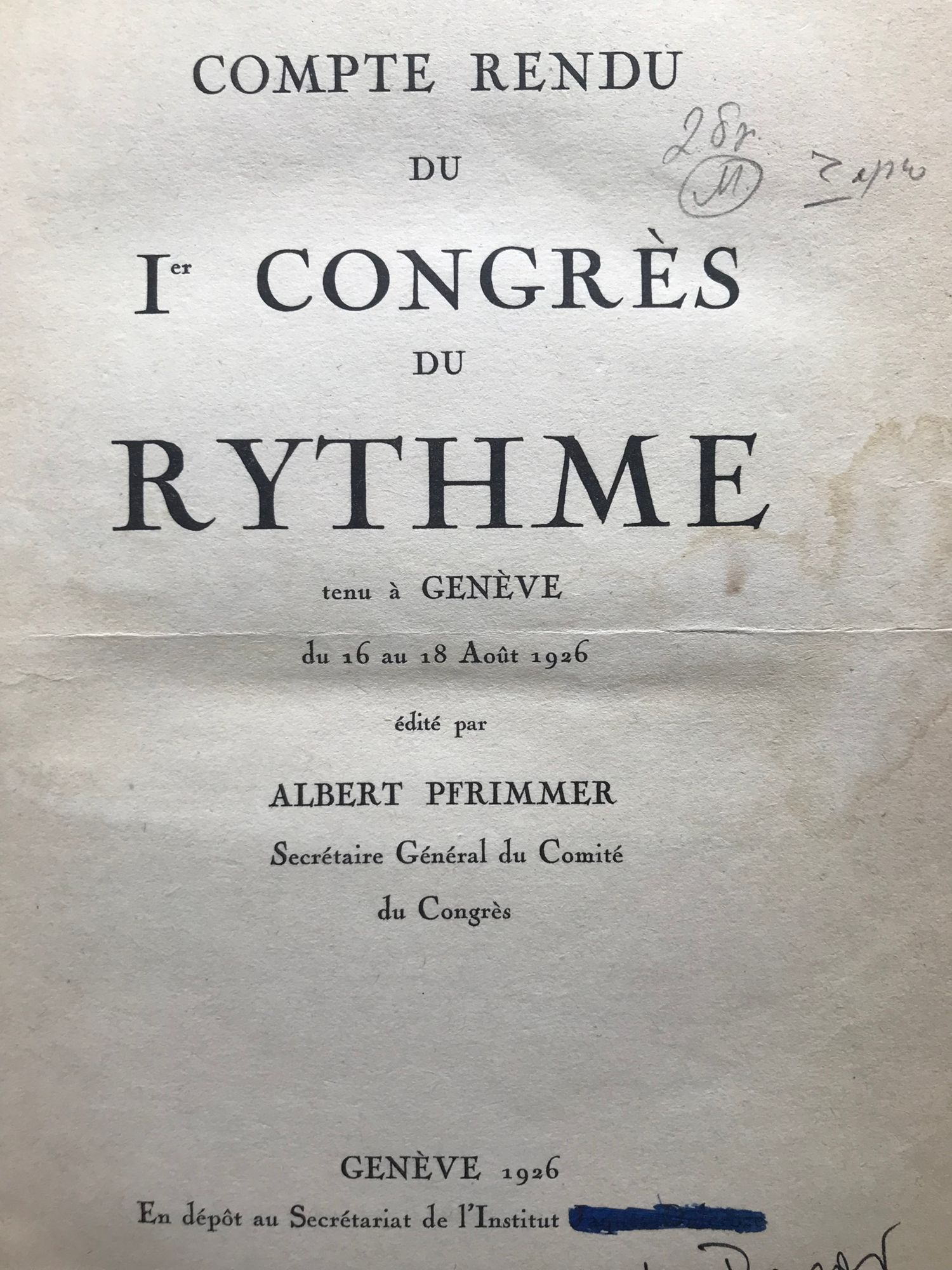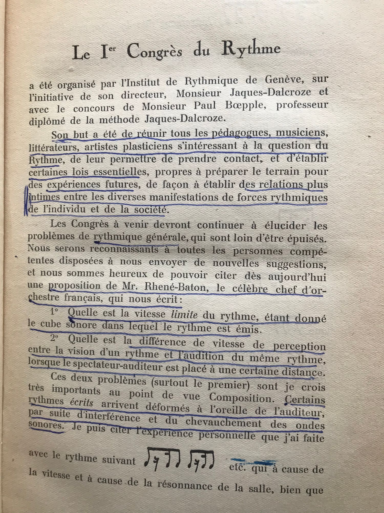 Compte Rendu du Ier Congres du Rythme
